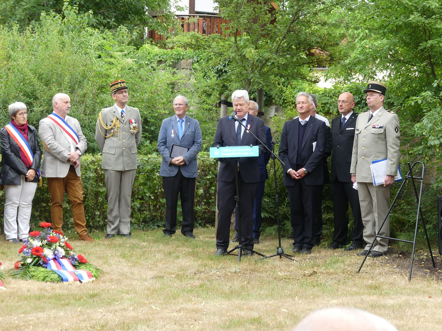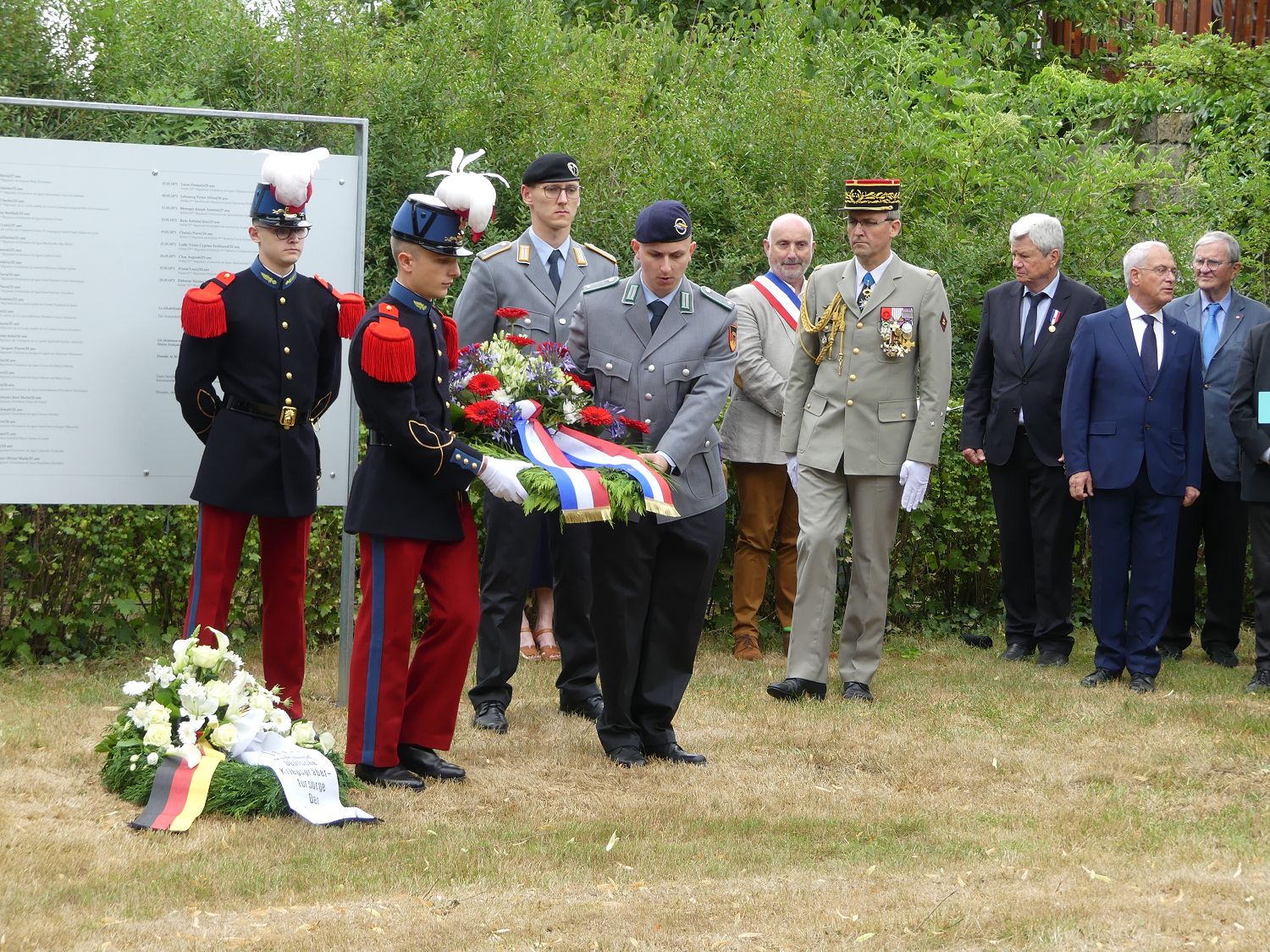 Vergessen wir nicht, dass du nicht der einzige warst, der sein Leben auf dem Schlachtfeld verloren hat, denn 116 andere Soldaten haben ebenso ihr Leben gelassen, um unser Vaterland, unsere Werte und unsere Freiheit zu verteidigen. Aber lassen wir uns nicht täuschen, nichts ist jemals endgültig erreicht. Der Frieden in Europa ist bedroht, denn der Krieg steht vor den Toren unseres Europas. Seien wir also auf der Hut.“ Anschließend verstreute Bürgermeister Raigné die mitgebrachte Heimaterde auf dem Gräberfeld.