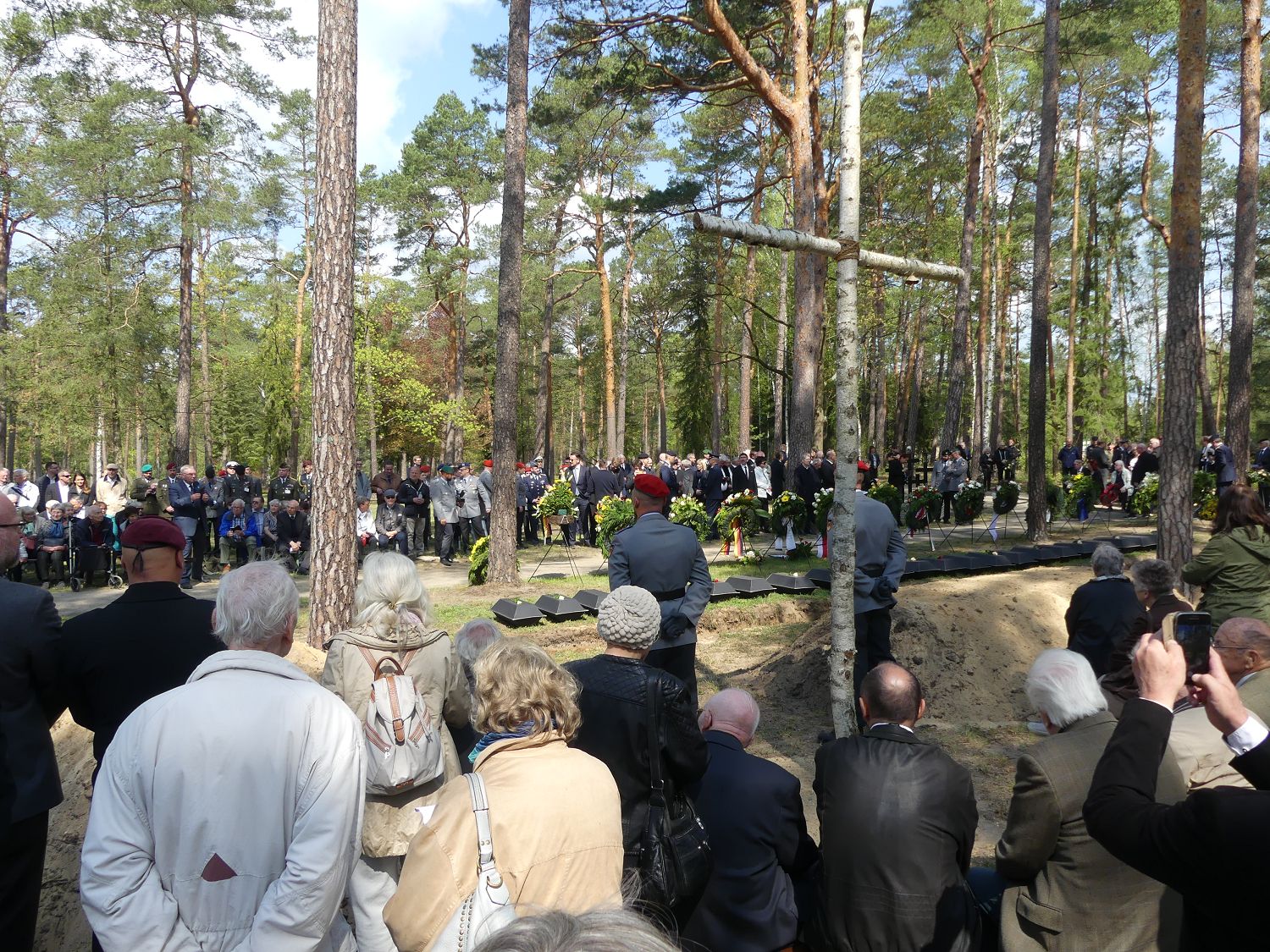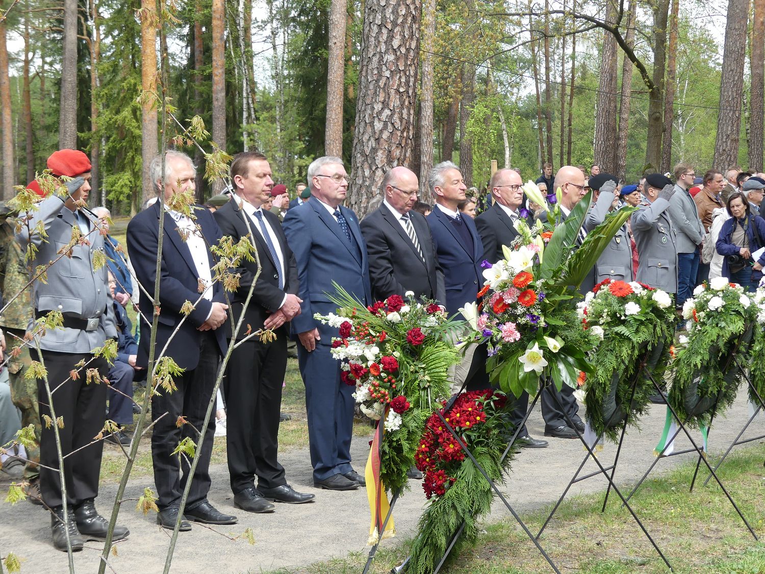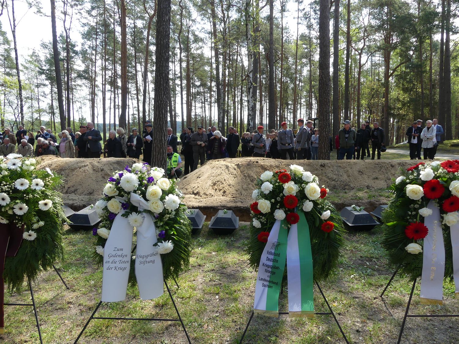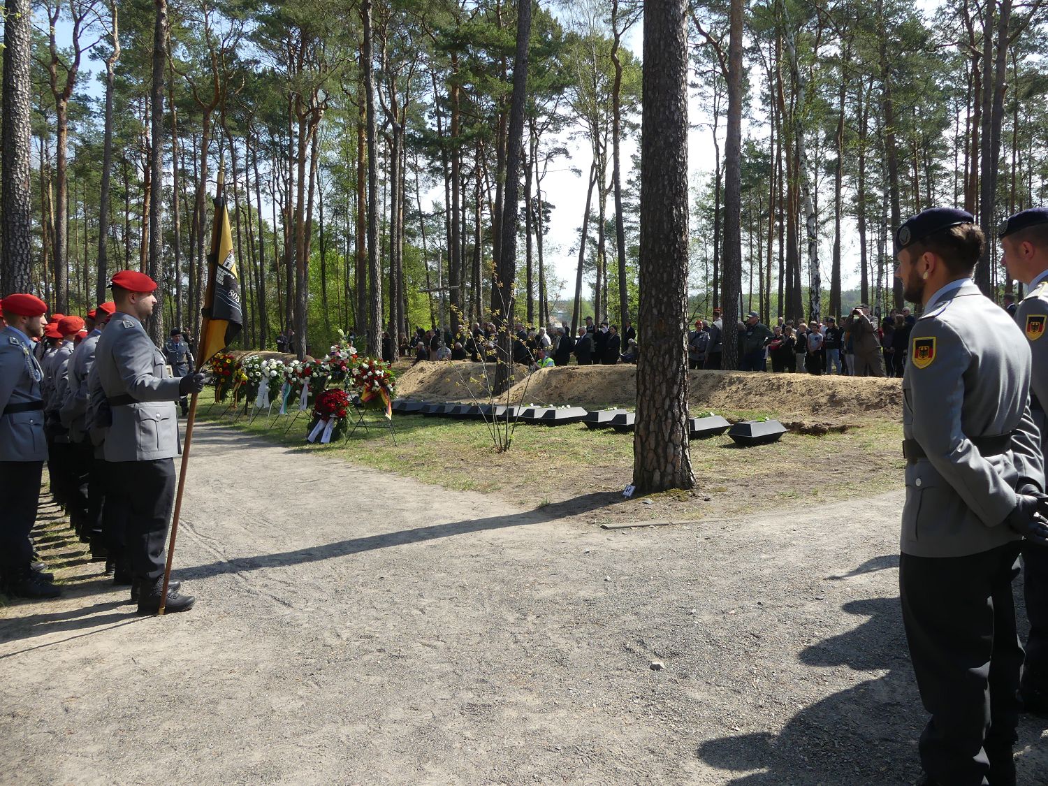 86 deutsche Gefallene haben in Halbe ihre letzte würdige Ruhestätte bekommen – fast 77 Jahre nach Ende des Zweiten Weltkrieges. Volksbund-Präsident Wolfgang Schneiderhan mahnte in seiner Rede zum Frieden: „Wohin am Ende ideologische Verleitung und falsche Worte führen, das kann man nirgendwo besser nachvollziehen als auf einer Kriegsgräberstätte wie hier in Halbe“. Wie keine andere europäische Kriegsgräberorganisation vertrete der Volksbund die Botschaft des Friedens und wolle aller Opfergruppen des Krieges gedenken. Die beigesetzten Soldaten waren überwiegend im April 1945 in der Kesselschlacht von Halbe gefallen. Landtagspräsidentin Ulrike Liedtke, die auch Vorsitzende des Volksbundes Deutsche Kriegsgräberfürsorge in Brandenburg ist, verlas das Totengedenken. Weitere Teilnehmer waren Bundeswehr-Generalleutnant Martin Schelleis sowie mehrere Landräte und der britische Militärattaché. Aufgrund des Angriffskriegs gegen die Ukraine war in diesem Jahr keine russischen Vertreter geladen. Ein stilles Gedenken an den sowjetischen Gräbern war dennoch Teil des Programms.