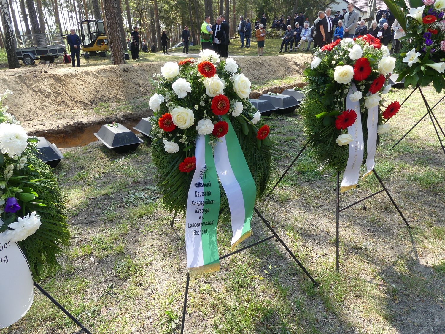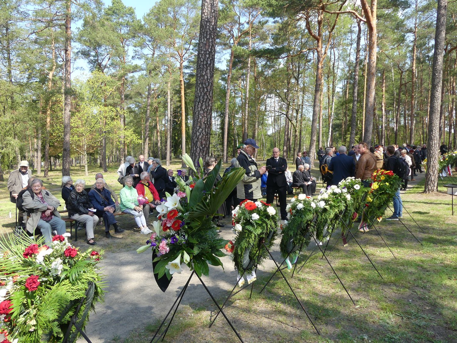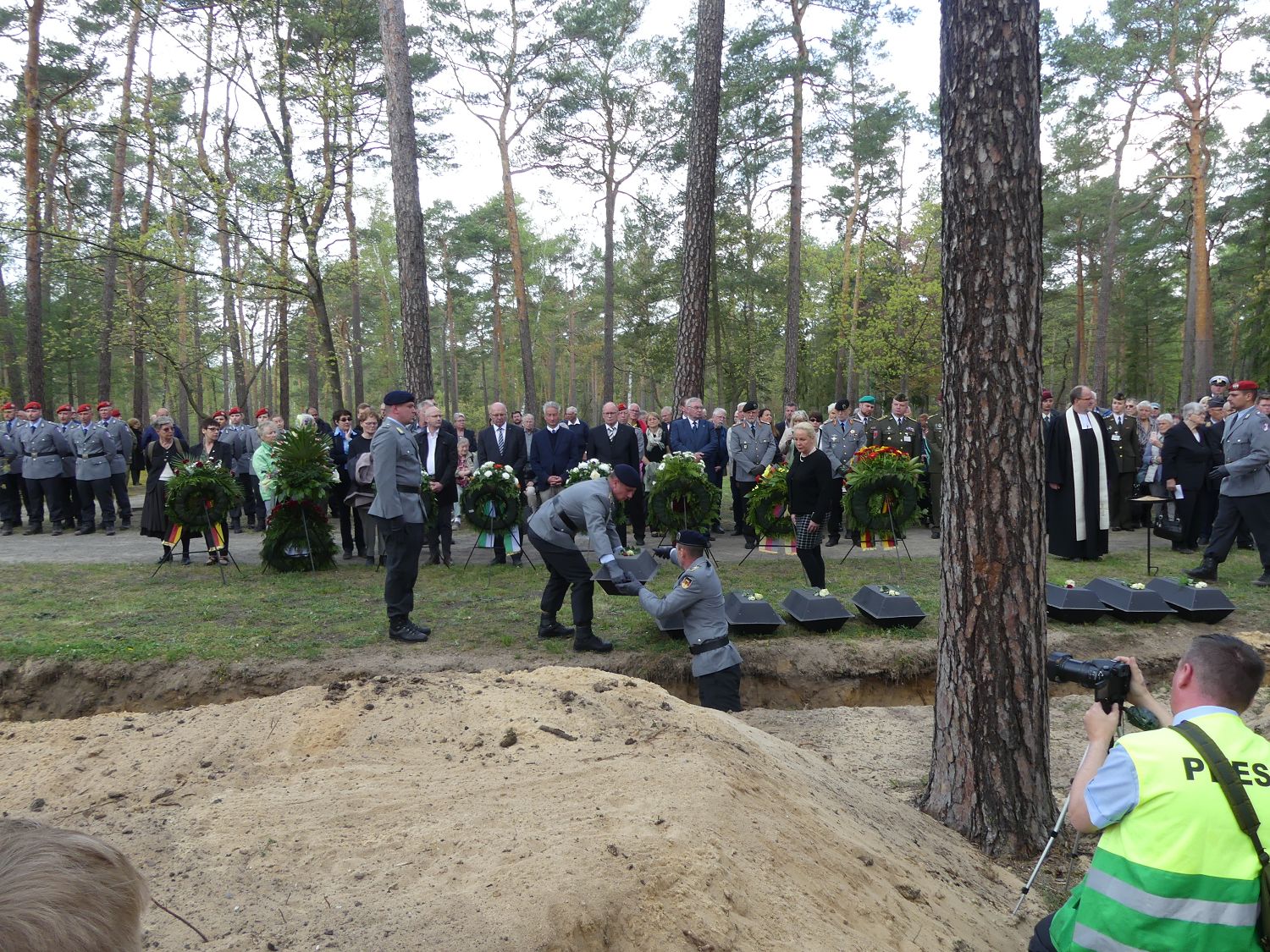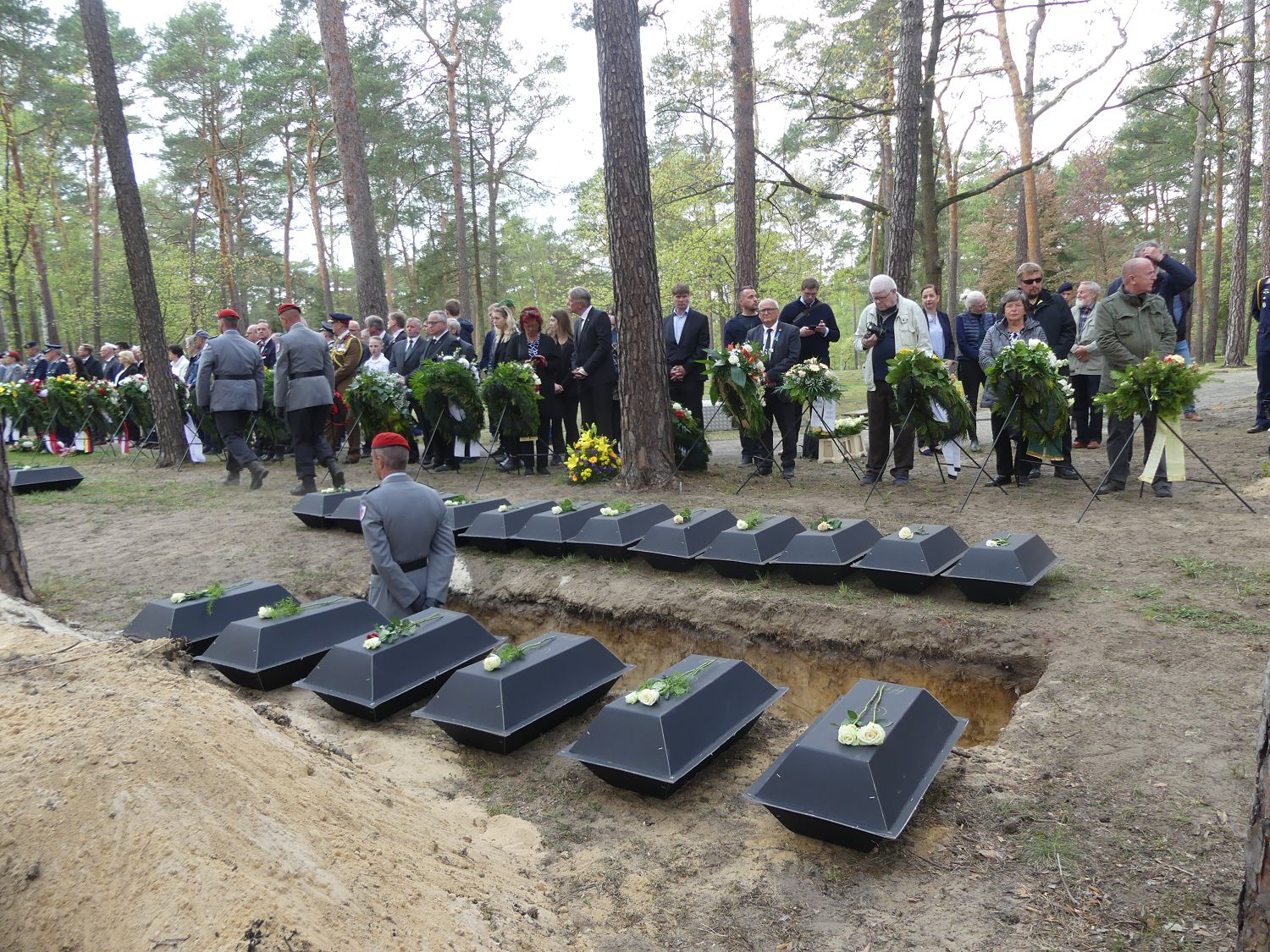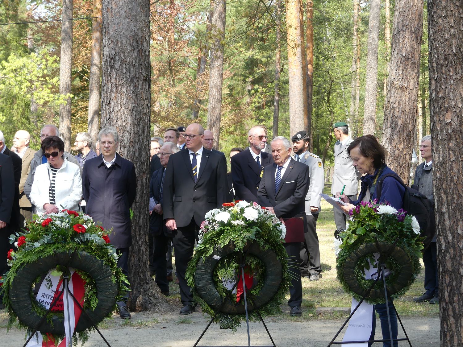 86 deutsche Gefallene haben in Halbe ihre letzte würdige Ruhestätte bekommen – fast 77 Jahre nach Ende des Zweiten Weltkrieges. Volksbund-Präsident Wolfgang Schneiderhan mahnte in seiner Rede zum Frieden: „Wohin am Ende ideologische Verleitung und falsche Worte führen, das kann man nirgendwo besser nachvollziehen als auf einer Kriegsgräberstätte wie hier in Halbe“. Wie keine andere europäische Kriegsgräberorganisation vertrete der Volksbund die Botschaft des Friedens und wolle aller Opfergruppen des Krieges gedenken. Die beigesetzten Soldaten waren überwiegend im April 1945 in der Kesselschlacht von Halbe gefallen. Landtagspräsidentin Ulrike Liedtke, die auch Vorsitzende des Volksbundes Deutsche Kriegsgräberfürsorge in Brandenburg ist, verlas das Totengedenken. Weitere Teilnehmer waren Bundeswehr-Generalleutnant Martin Schelleis sowie mehrere Landräte und der britische Militärattaché. Aufgrund des Angriffskriegs gegen die Ukraine war in diesem Jahr keine russischen Vertreter geladen. Ein stilles Gedenken an den sowjetischen Gräbern war dennoch Teil des Programms.