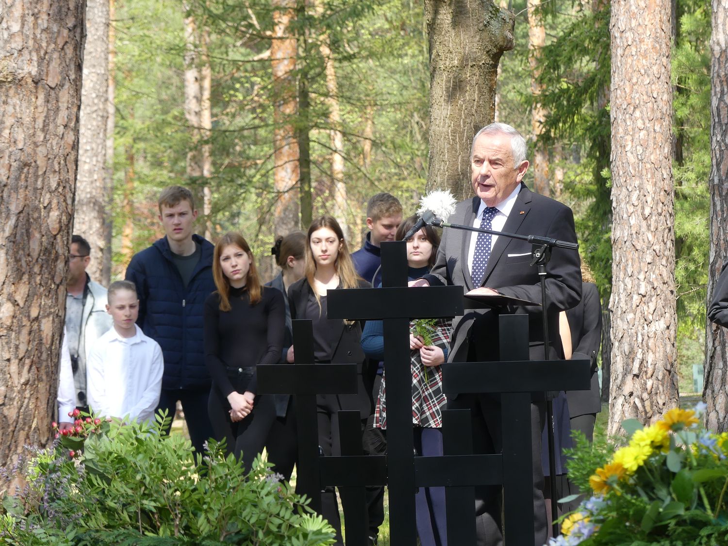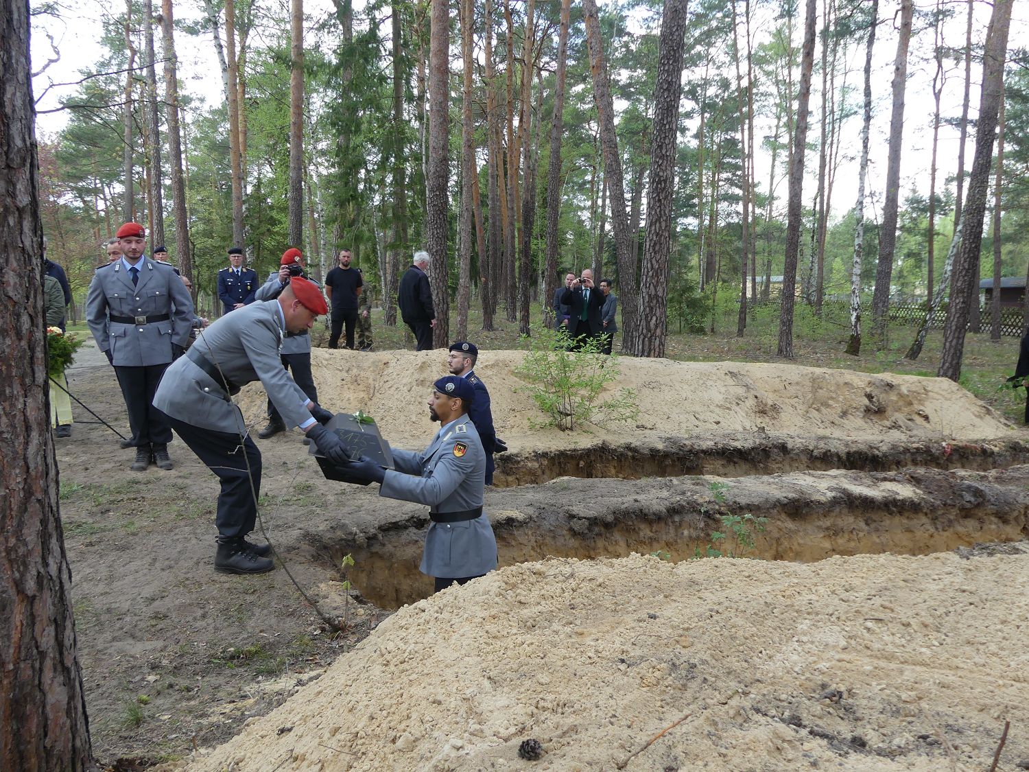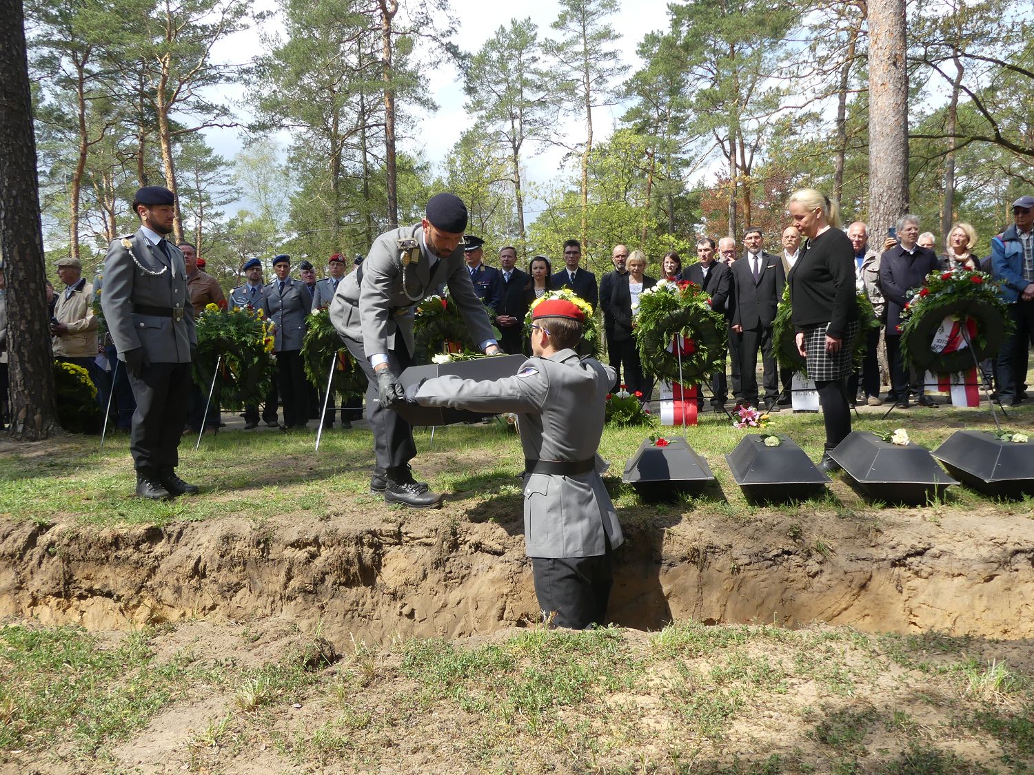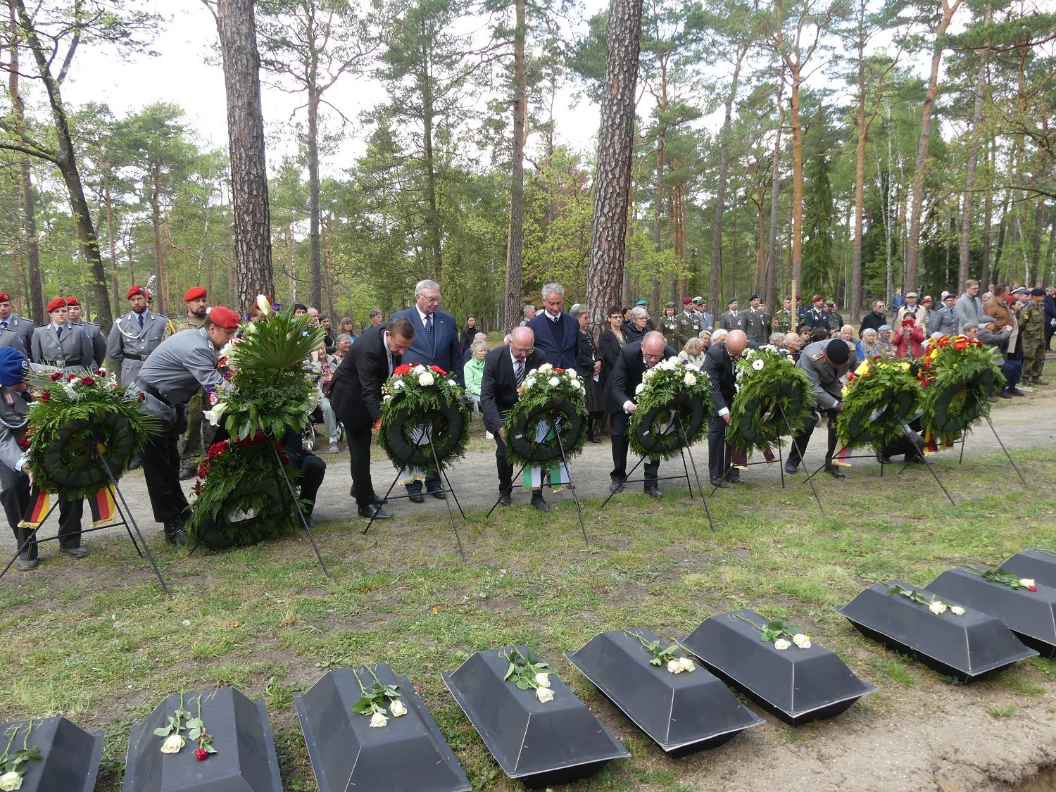 86 deutsche Gefallene haben in Halbe ihre letzte würdige Ruhestätte bekommen – fast 77 Jahre nach Ende des Zweiten Weltkrieges. Volksbund-Präsident Wolfgang Schneiderhan mahnte in seiner Rede zum Frieden: „Wohin am Ende ideologische Verleitung und falsche Worte führen, das kann man nirgendwo besser nachvollziehen als auf einer Kriegsgräberstätte wie hier in Halbe“. Wie keine andere europäische Kriegsgräberorganisation vertrete der Volksbund die Botschaft des Friedens und wolle aller Opfergruppen des Krieges gedenken. Die beigesetzten Soldaten waren überwiegend im April 1945 in der Kesselschlacht von Halbe gefallen. Landtagspräsidentin Ulrike Liedtke, die auch Vorsitzende des Volksbundes Deutsche Kriegsgräberfürsorge in Brandenburg ist, verlas das Totengedenken. Weitere Teilnehmer waren Bundeswehr-Generalleutnant Martin Schelleis sowie mehrere Landräte und der britische Militärattaché. Aufgrund des Angriffskriegs gegen die Ukraine war in diesem Jahr keine russischen Vertreter geladen. Ein stilles Gedenken an den sowjetischen Gräbern war dennoch Teil des Programms.