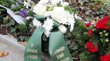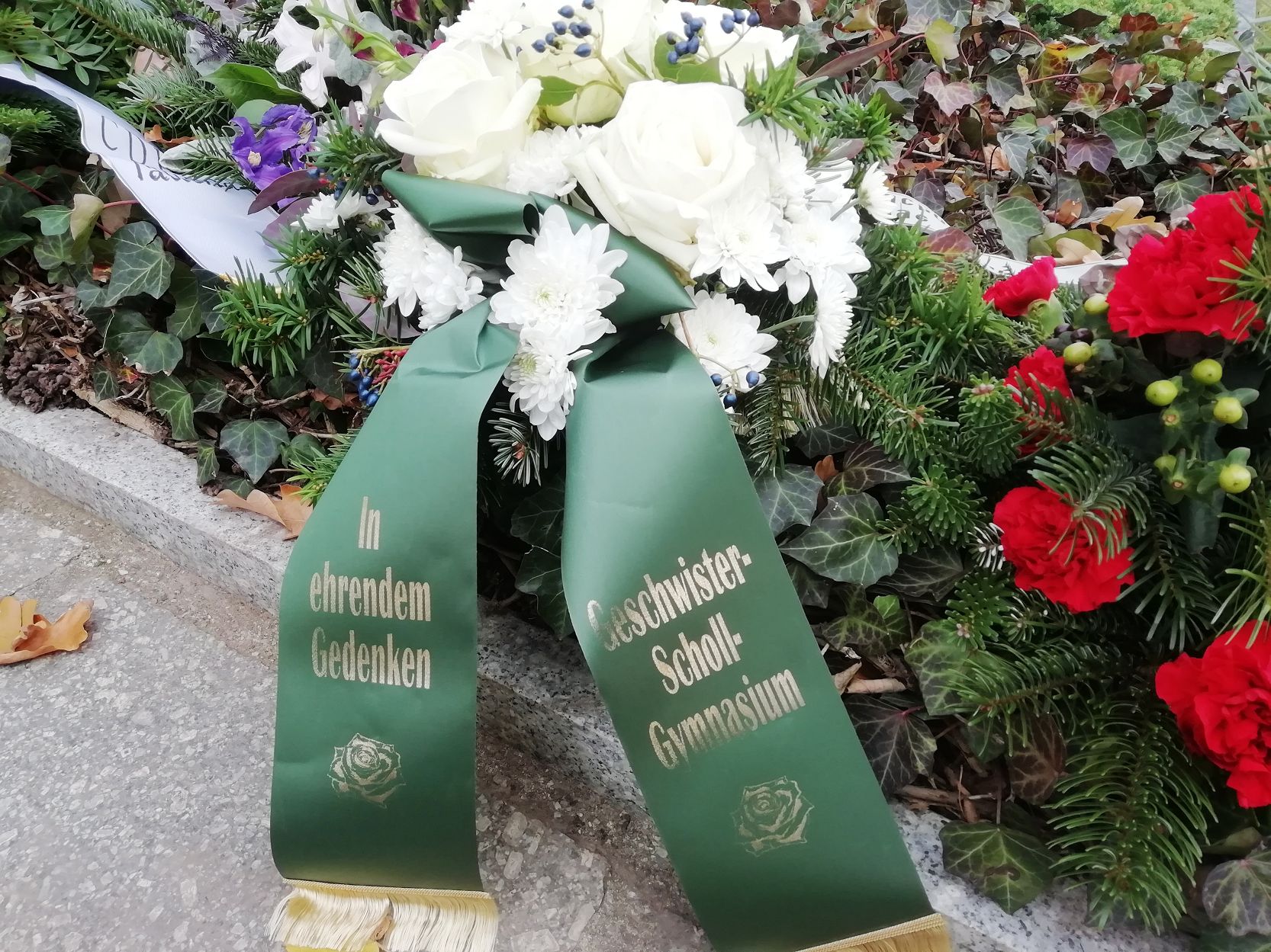 Anschließend legten Frau Rentsch sowie Vertreter der Lehrer und Schüler unseres Gymnasiums ein Blumengebinde mit weißen Rosen nieder.
