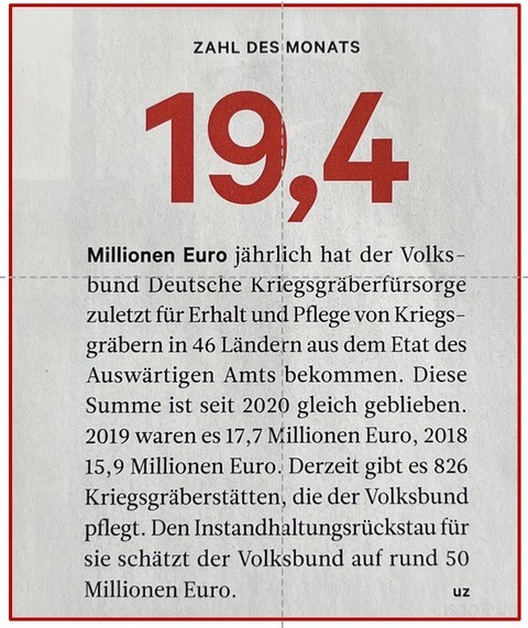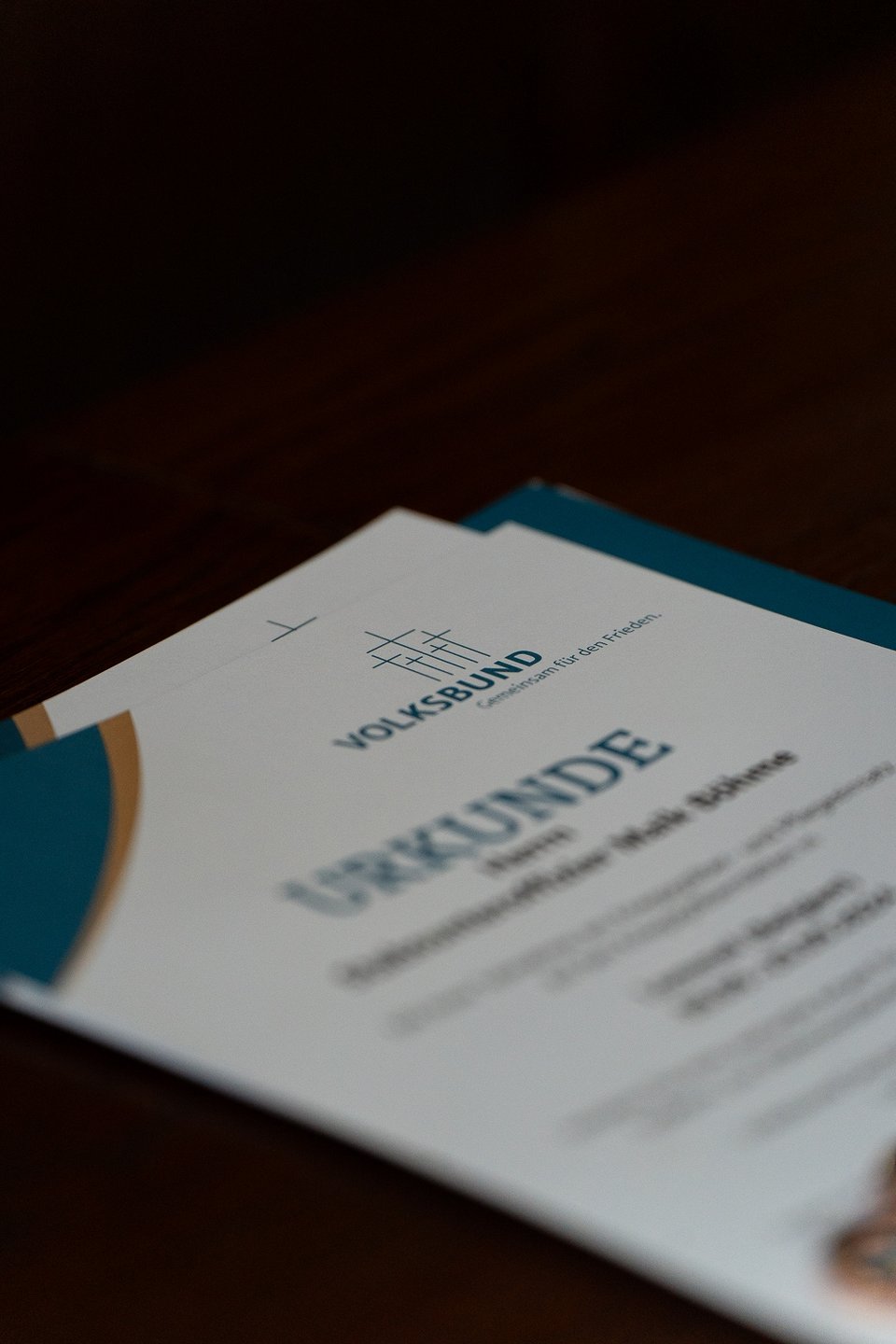 „Wenn Soldatengräber errichtet und gepflegt werden, wenn das Schicksal von lange vermissten Menschen endlich geklärt werden kann, dann ist das unglaublich wichtig für die Hinterbliebenen. Mit seinem Engagement hilft der Volksbund Deutsche Kriegsgräberfürsorge e. V., dies möglich zu machen, und unterstützt damit zugleich die Friedens- und Erinnerungsarbeit. Ihr Einsatz ist zudem ein wertvoller und wichtiger Beitrag der Versöhnung über Grenzen hinweg. All das verdient großen Dank und Anerkennung.“
