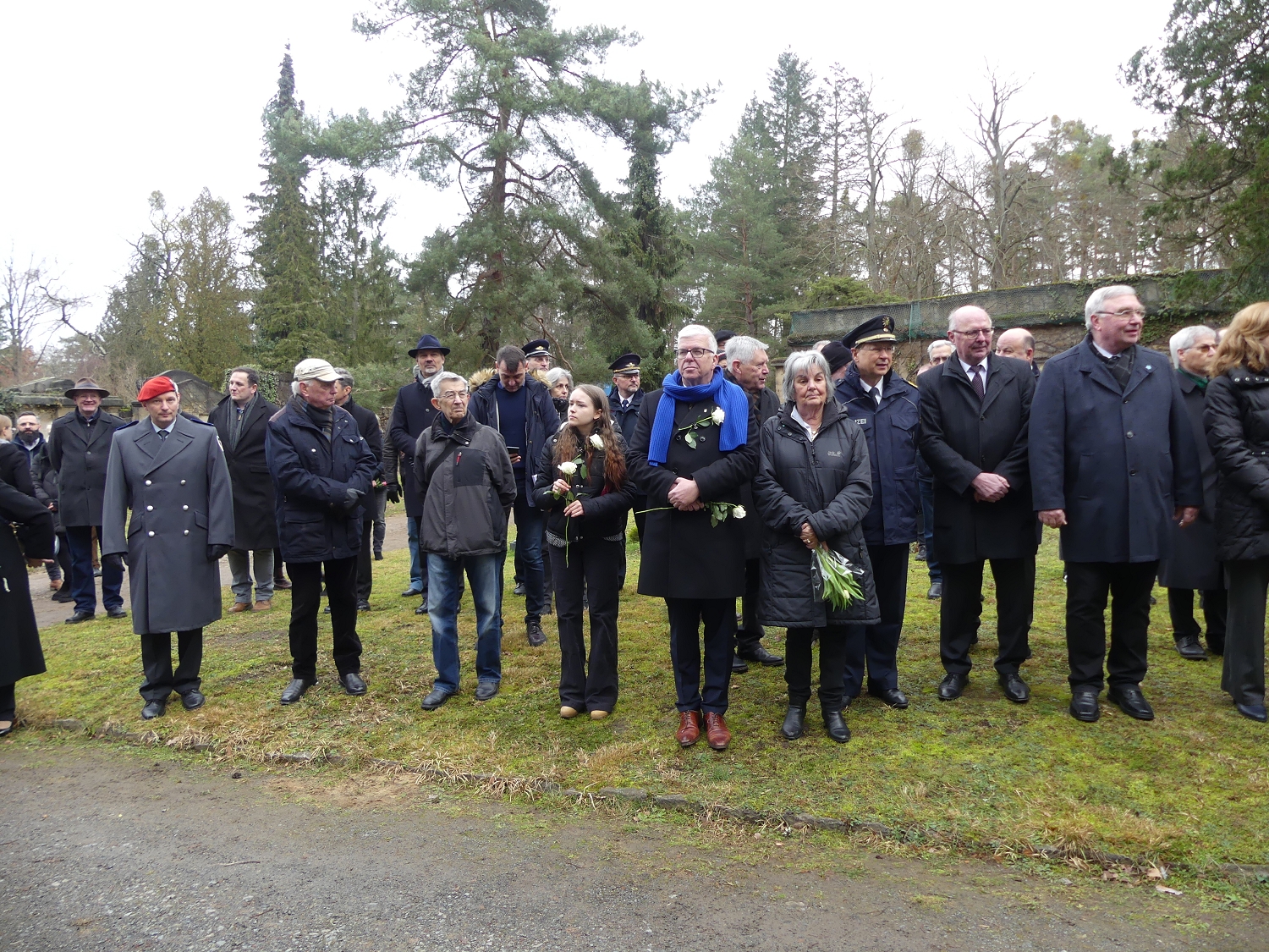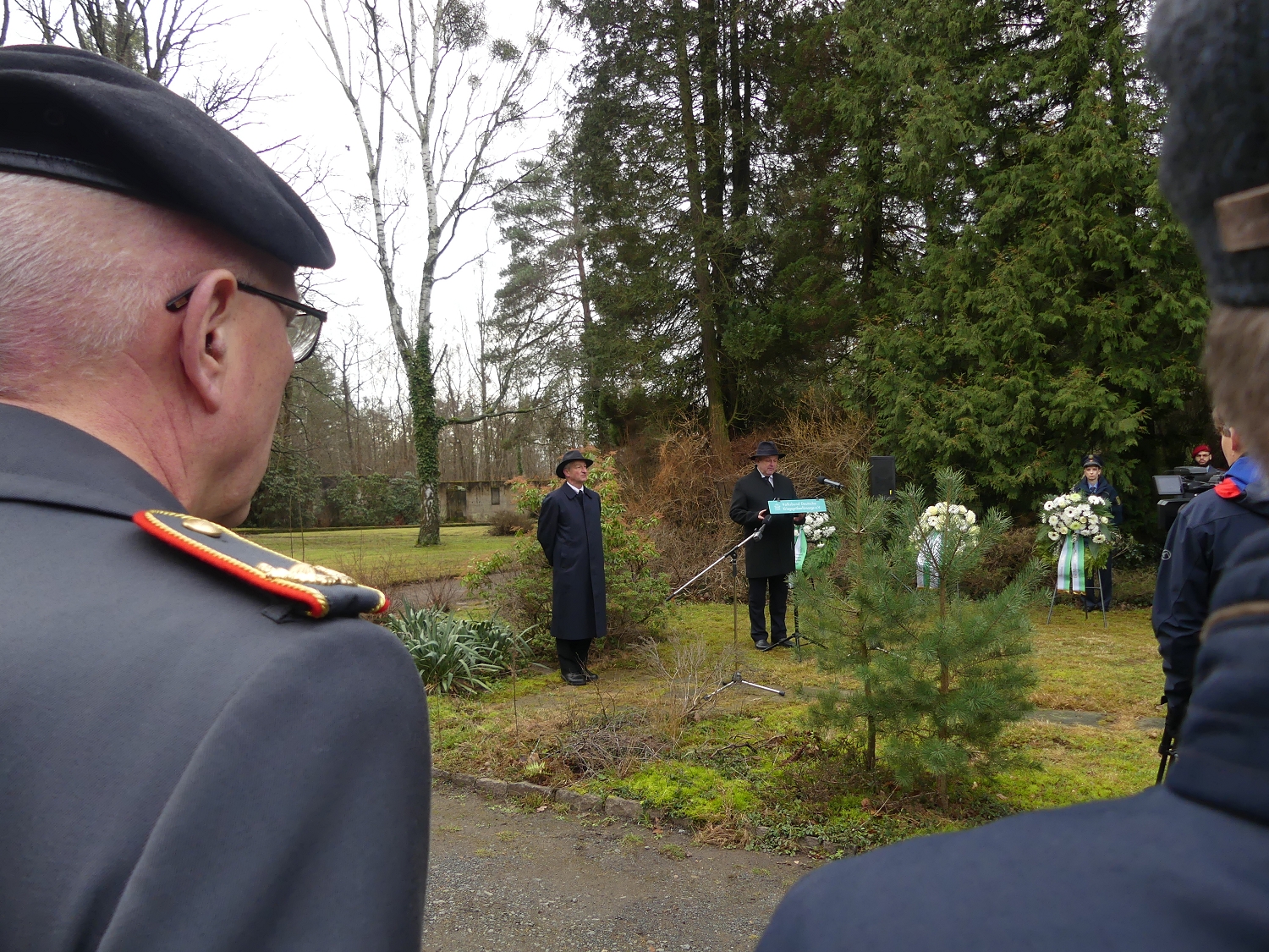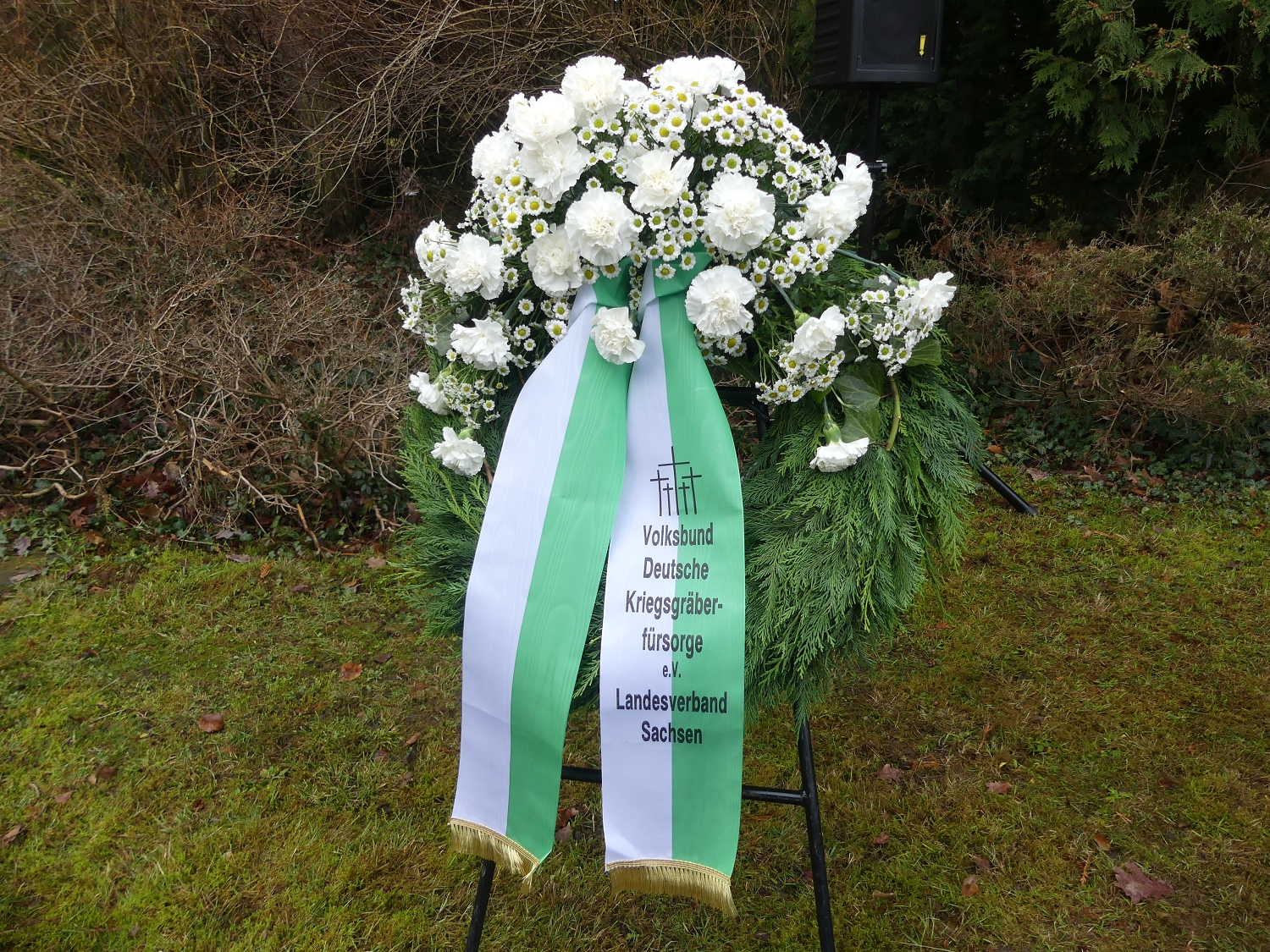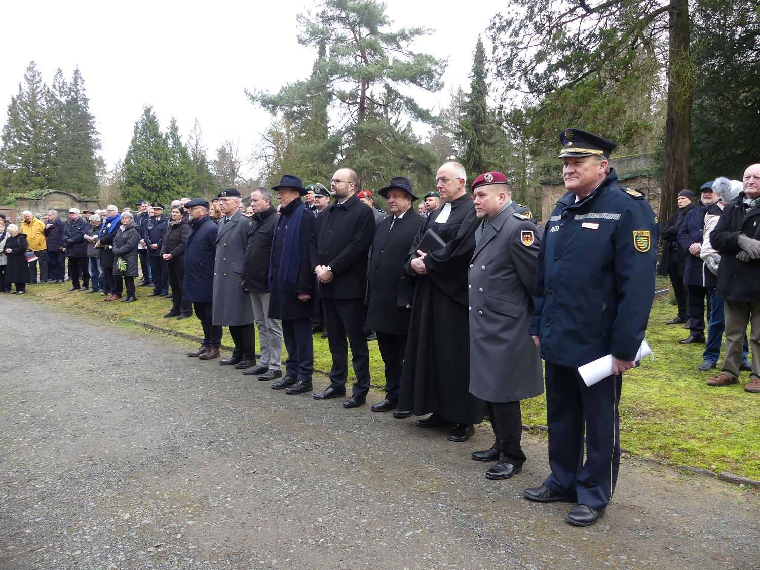 Der Landesverband Sachsen hat am heutigen Morgen auf dem Dresdner Nordfriedhof der Opfer des Luftangriffs vom 13./14. Februar 1945 gedacht. Am „Stillen Gedenken“ am Gedenkstein für die Einsatzkräfte von Polizei und Feuerwehr nahmen Vertreter von Landtag, Staatsregierung, Landeshauptstadt, Landespolizei, Bundeswehr, Reservistenverband und Mitglieder des Volksbunds teil. Auch zahlreiche weitere Gäste waren zugegen.