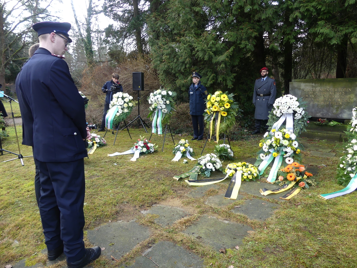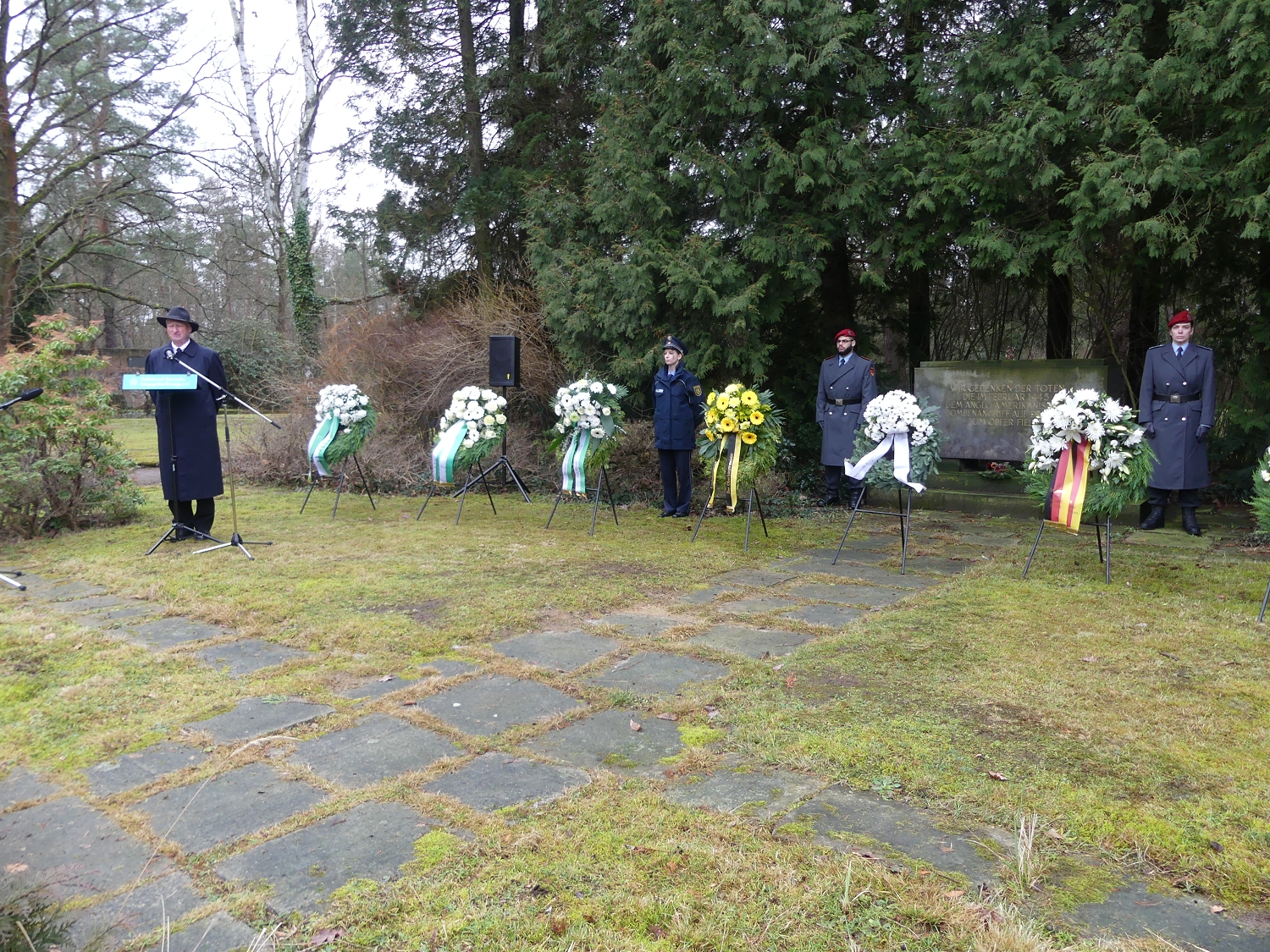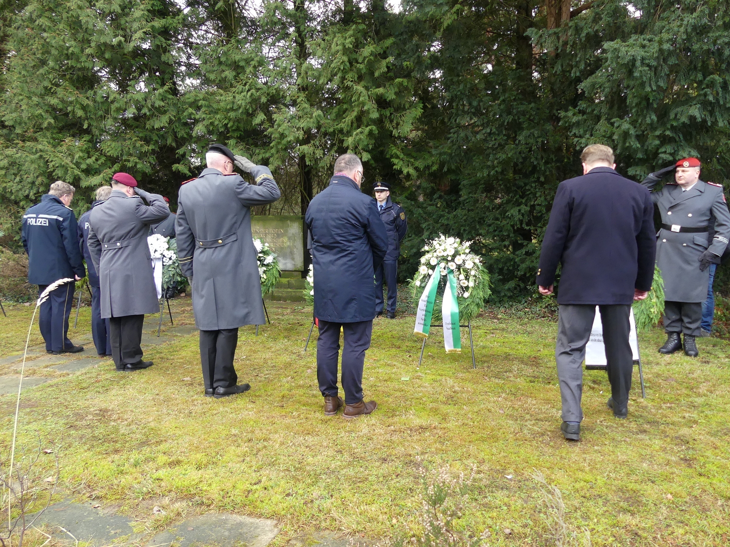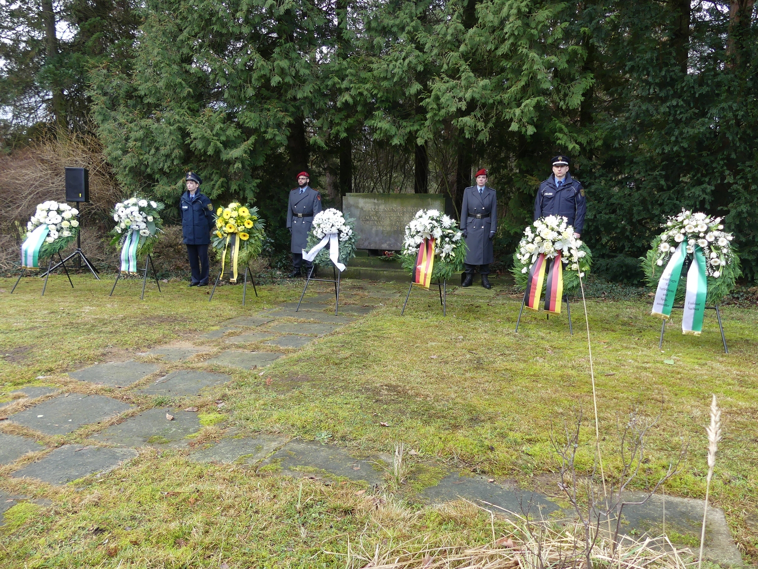 Der Landesverband Sachsen hat am heutigen Morgen auf dem Dresdner Nordfriedhof der Opfer des Luftangriffs vom 13./14. Februar 1945 gedacht. Am „Stillen Gedenken“ am Gedenkstein für die Einsatzkräfte von Polizei und Feuerwehr nahmen Vertreter von Landtag, Staatsregierung, Landeshauptstadt, Landespolizei, Bundeswehr, Reservistenverband und Mitglieder des Volksbunds teil. Auch zahlreiche weitere Gäste waren zugegen.