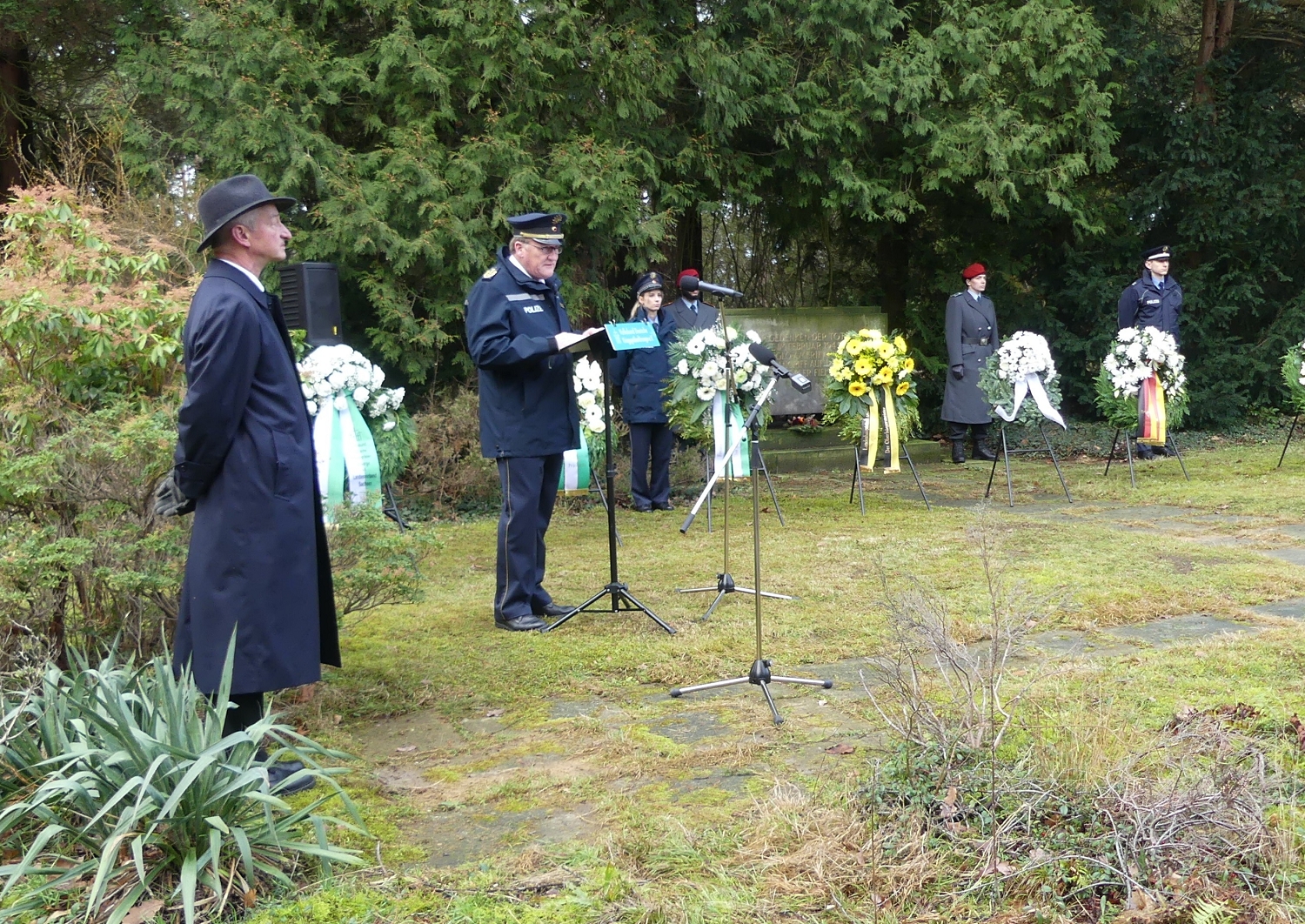 Das Grußwort sprach der Regionalbeauftragte des Volksbunds für Dresden, Ingo Flemming MdL. Anschließend folgten geistliche Worte des ev. Militärdekans in Dresden, Klaus Kaiser, und die Ansprache des Landespolizeipräsidenten, Jörg Kubiessa. Zum Abschluss verlasen Landtagspräsident Dr. Matthias Rößler das Totengedenken und der Kommandeur der Offizierschule des Heeres, Brigadegeneral Rohde, das Einsatzgedenken .