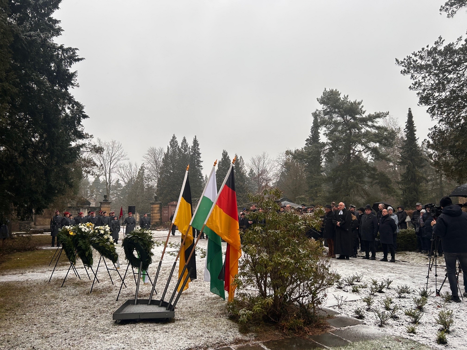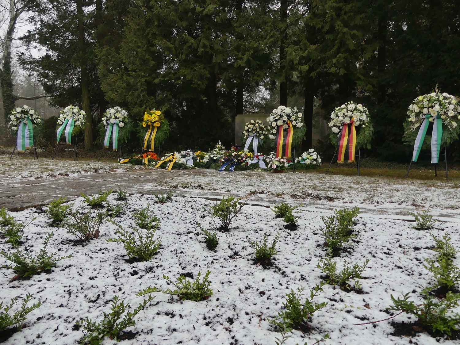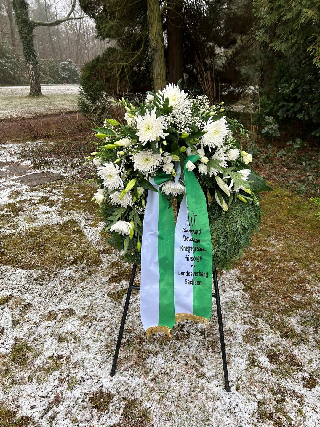 Der Landesverband Sachsen hat am heutigen Morgen auf dem Dresdner Nordfriedhof der Opfer des Luftangriffs vom 13./14. Februar 1945 gedacht. Am „Stillen Gedenken“ am Gedenkstein für die Einsatzkräfte von Polizei und Feuerwehr nahmen Vertreter von Landtag, Staatsregierung, Landeshauptstadt, Feuerwehr, Landespolizei, Bundeswehr, Reservistenverband und Mitglieder des Volksbunds teil. Auch zahlreiche weitere Gäste waren zugegen.