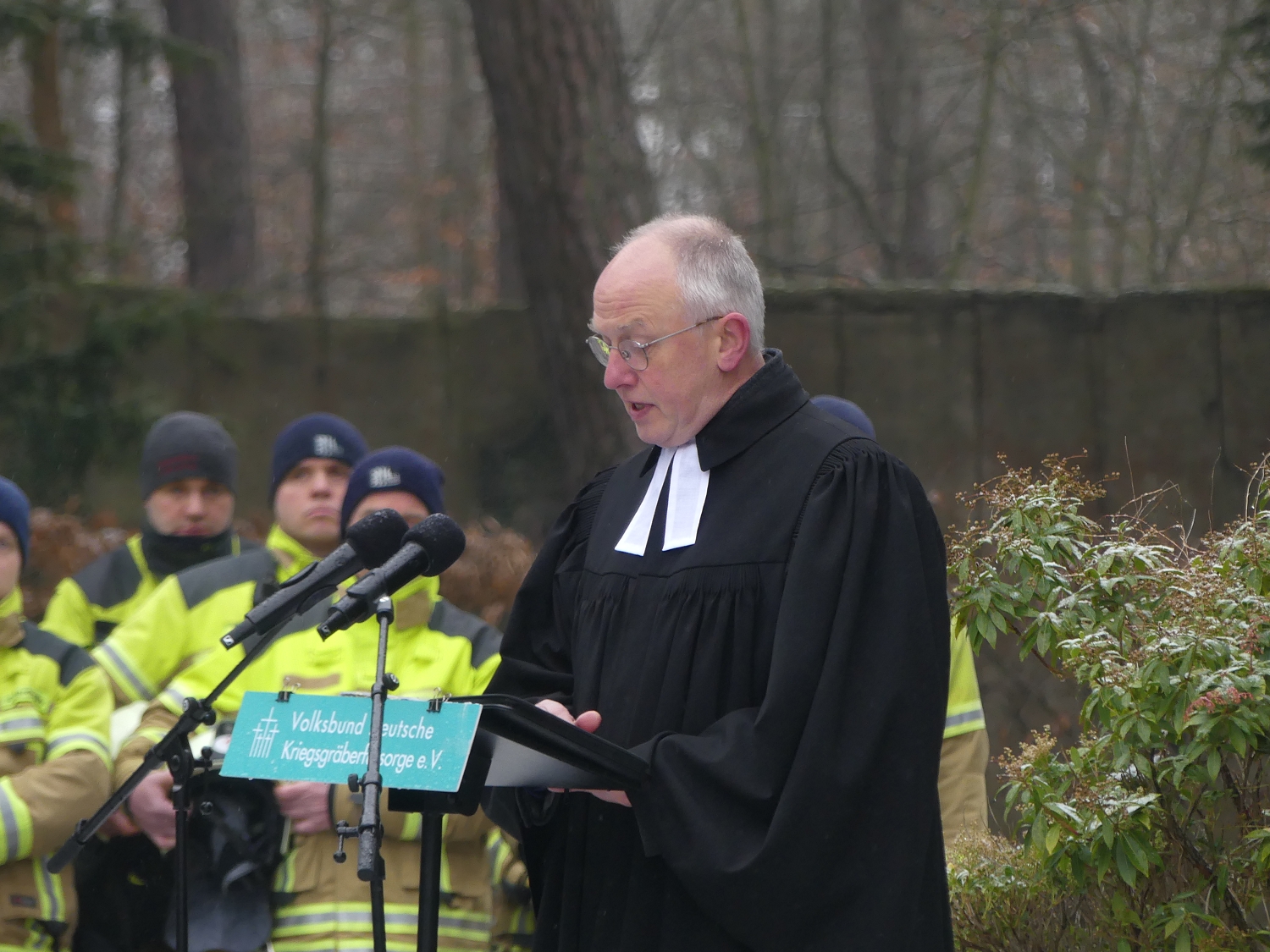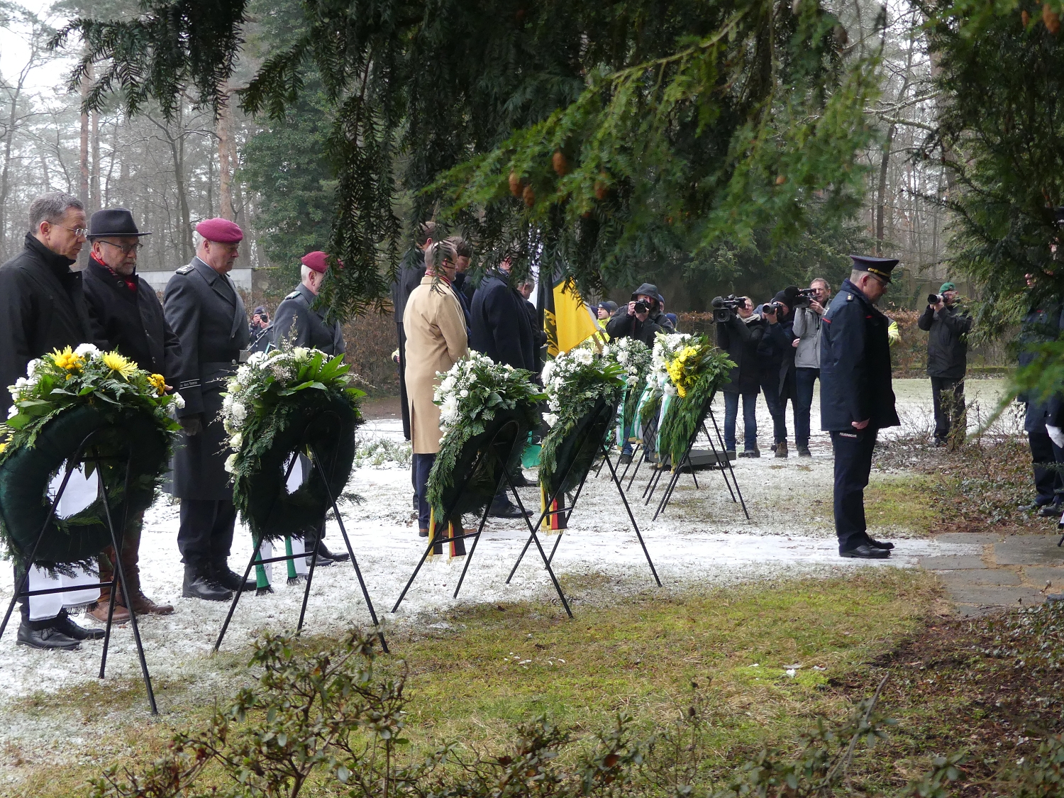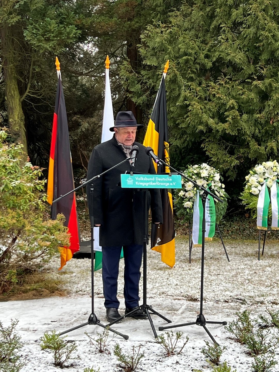 Der Landesverband Sachsen hat am heutigen Morgen auf dem Dresdner Nordfriedhof der Opfer des Luftangriffs vom 13./14. Februar 1945 gedacht. Am „Stillen Gedenken“ am Gedenkstein für die Einsatzkräfte von Polizei und Feuerwehr nahmen Vertreter von Landtag, Staatsregierung, Landeshauptstadt, Feuerwehr, Landespolizei, Bundeswehr, Reservistenverband und Mitglieder des Volksbunds teil. Auch zahlreiche weitere Gäste waren zugegen.