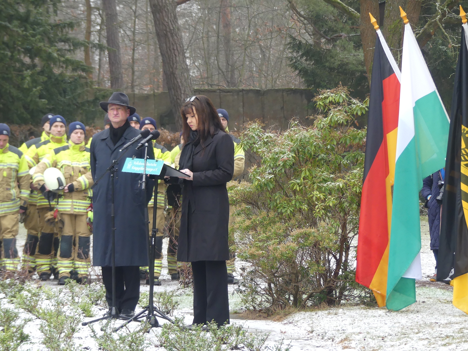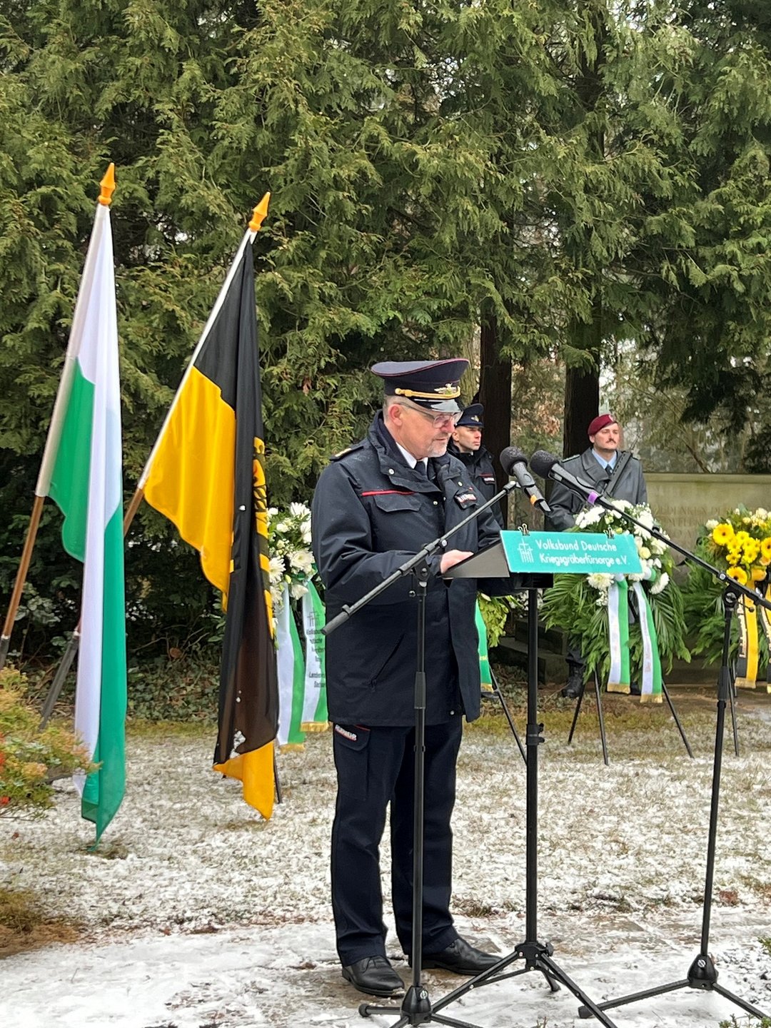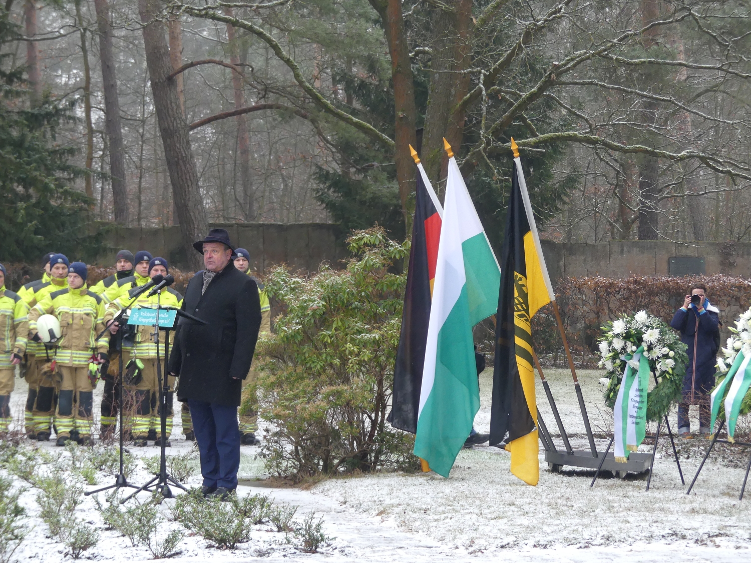Der Landesgeschäftsführer, Dr. Dirk Reitz, begrüßte die Gäste zu Beginn der Veranstaltung protokollarisch und übergab anschließend an den Regionalbeauftragten des Volksbunds für Dresden, Ingo Flemming (MdL), der ein Grußwort an die Anwesenden richtete. Die Gedenkansprache hielt Herr Branddirektor Löwe, Leiter der Berufsfeuerwehr Dresden. Das Totengedenken verlas die Erste Vizepräsidentin des Sächsischen Landtags, Ines Saborowski, und das Einsatzgedenken Oberst Aslak Heisner von der Offizierschule des Heeres Dresden.
