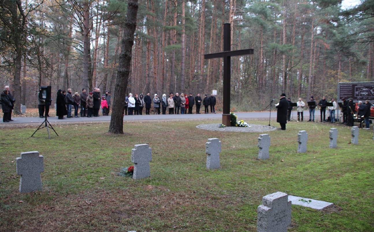 Auch auf der Kriegsgräberstätte des Lagers Elsterhorst in Nardt wurde der Opfer von Krieg und Gewaltherrschaft gedacht. Die Gedenkrede und das Totengedenken wurden gestaltet von Superintendent i.R. Friedhardt Vogel.