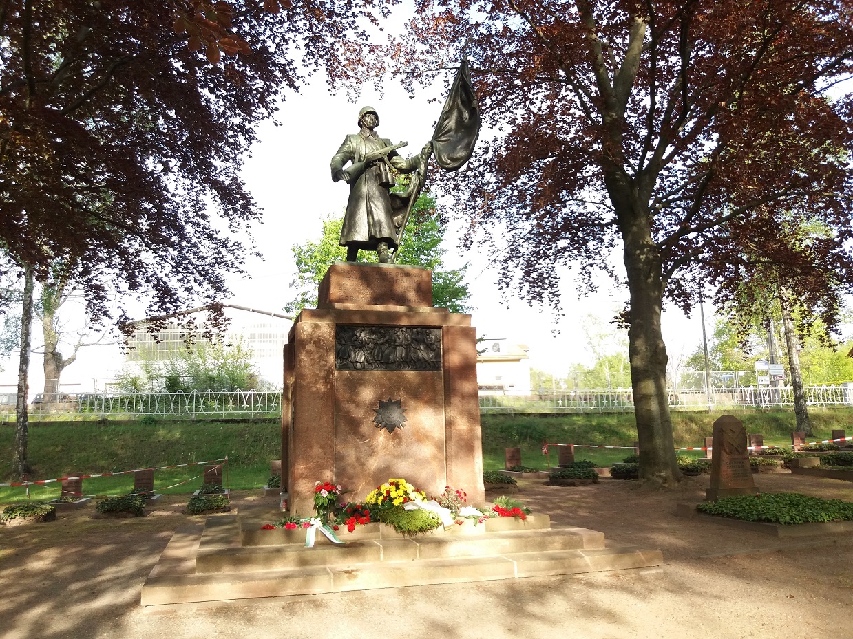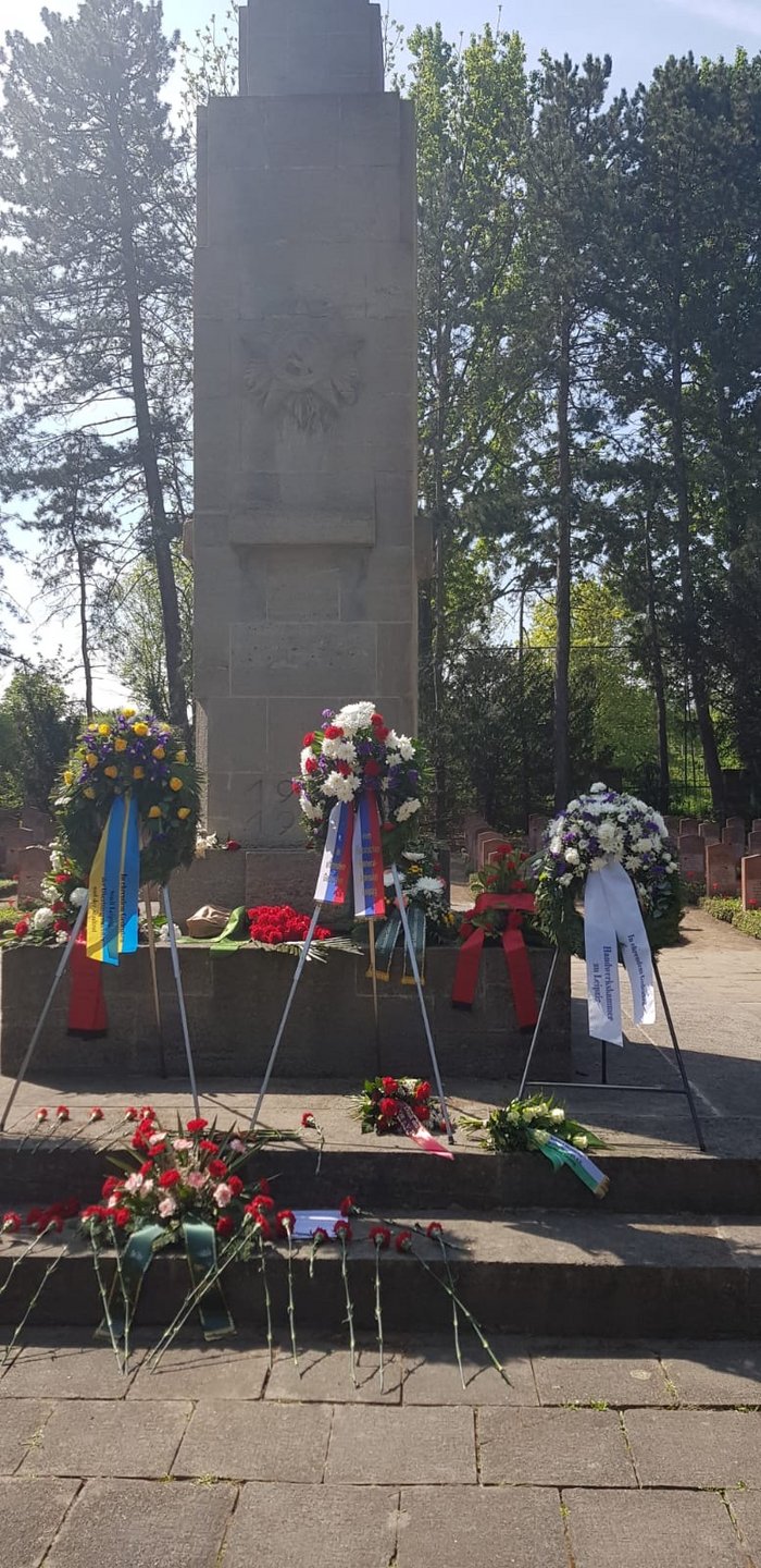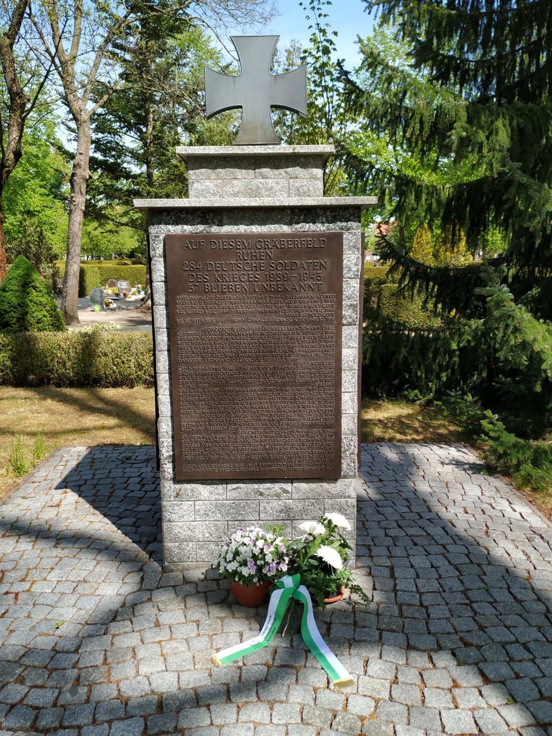 Jens Lehmann MdB und Dr. Günther Schmidt, Vorsitzender bzw. stellv. Vorsitzender des Stadtverbandes Leipzig, haben am 8. Mai 2020 zum Gedenken an die Kriegstoten einen Handstrauß auf dem Ostfriedhof niedergelegt.