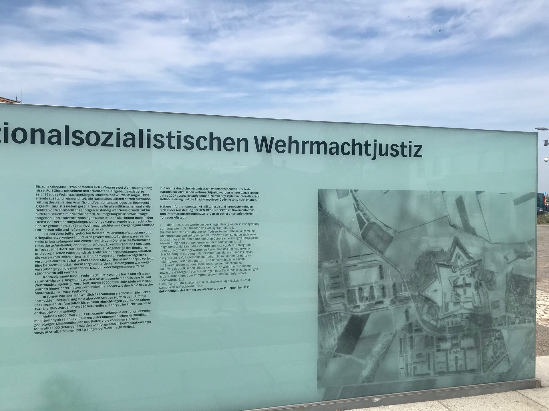 Torgau wurde im Zweiten Weltkrieg endgültig zum Zentrum der Wehrmachtjustiz, als das Reichskriegsgericht 1943 seinen Sitz hierher verlegte. Bereits seit 1936 befand sich mit dem Fort Zinna ein Wehrmachtsgefängnis in der Stadt, im August 1939 kam mit dem Gefängnis Brückenkopf ein weiteres hinzu. Die NS-Militärjustiz verurteilte über eine Million Wehrmachtsangehörige, davon 30.000 zum Tode. Die Urteile widersprachen rechtsstaatlichen Grundsätzen, eine Rehabilitierung erfolgte dennoch erst 2009. Neben der Stiftung Sächsische Gedenkstätten, vertreten durch ihre Vorsitzende, Kulturministerin Barbara Klepsch, beteiligte sich auch der Landesverband Sachsen an den Gedenkfeierlichkeiten mit Kranzniederlegung.