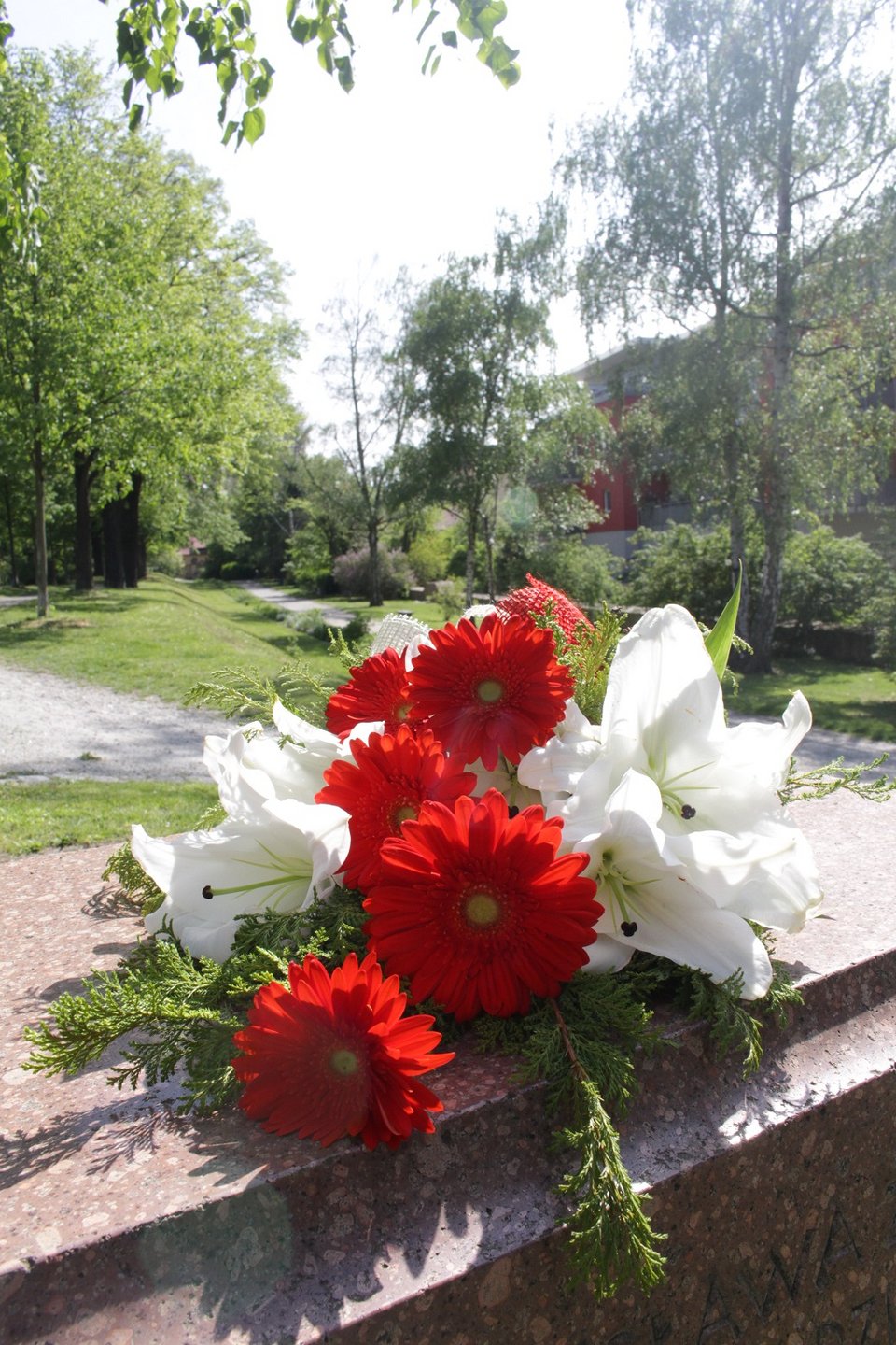 Gerade noch rechtzeitig durfte der Geschichts-LK 11 des Geschwister-Scholl-Gymnasiums Taucha zurück in die Schule, um sich am stillen Gedenken zum 75. Jahrestag der Befreiung zu beteiligen. Die Schülerinnen und Schüler legten weiße Rosen nieder. Weiße Rosen gelten als Symbol des Friedens und sind gleichzeitig Symbol der Schule.