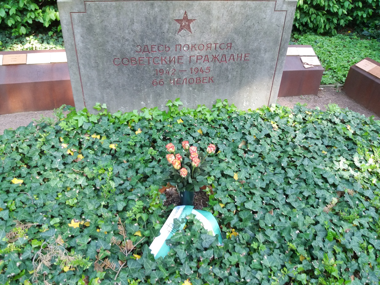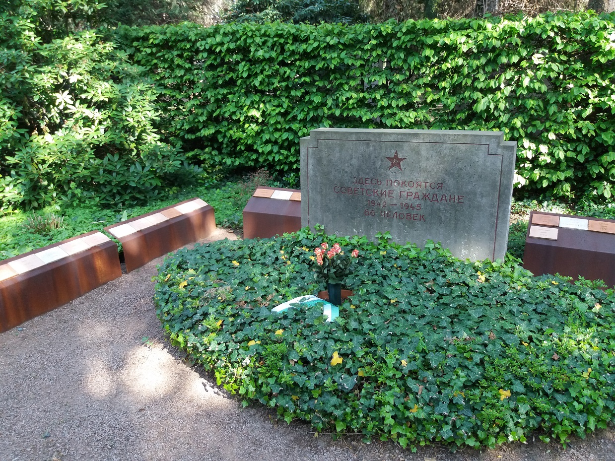 Auf dem sowjetischen Gedenkstein auf dem Dresdner Johannisfriedhof steht unter einem roten Stern in russischer Sprache: ,,Hier ruhen sowjetische Bürger, 1942-1945, 66 Menschen'' Doch die Identität der hier Bestatteten ist zum Teil bis heute nicht geklärt, da die Unterlagen des Johannisfriedhofs bei den Bombenangriffen auf Dresden am 13./14. Februar 1945 verbrannten. Ausführlichere Informationen hierzu bietet u. a. eine Infotafel, die von Schülern der 88. Oberschule Dresden in Zusammenarbeit mit dem Volksbund und der Stiftung Sächsische Gedenkstätten erarbeitet und aufgestellt wurde. Die Jugendlichen haben auch den Toten ihre Namen zurückgegeben, indem sie diese auf Tonziegel gebrannt haben, die nun den kleinen Gedenkplatz umrahmen.