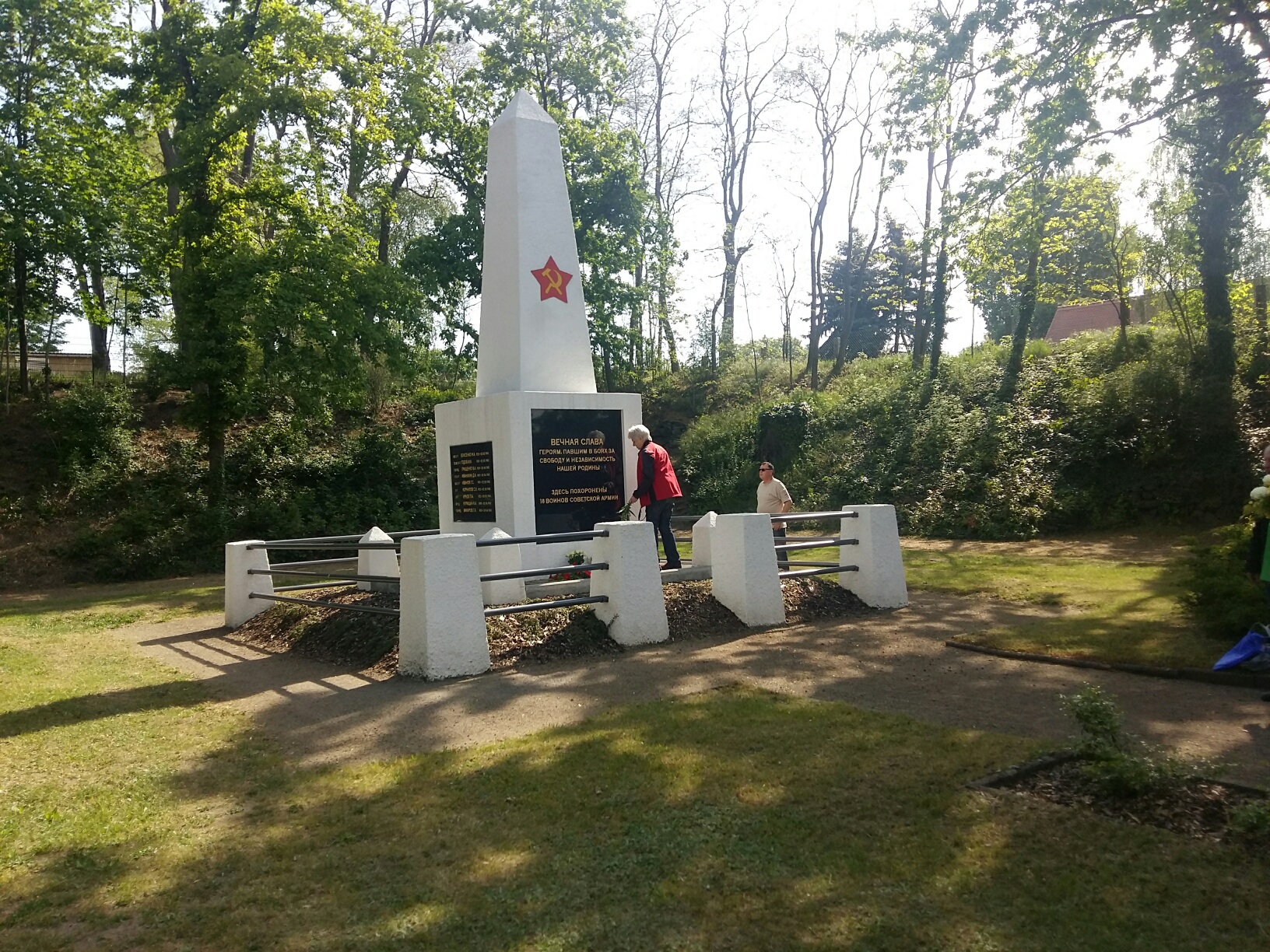 Volksbundmitglied Uwe Mühle legte zwei Blumensträuße auf der sowjetischen und deutschen Kriegsgräberstätte nieder. In Weißwasser verbindet ein Gedenkpfad beide Stätten miteinander.
