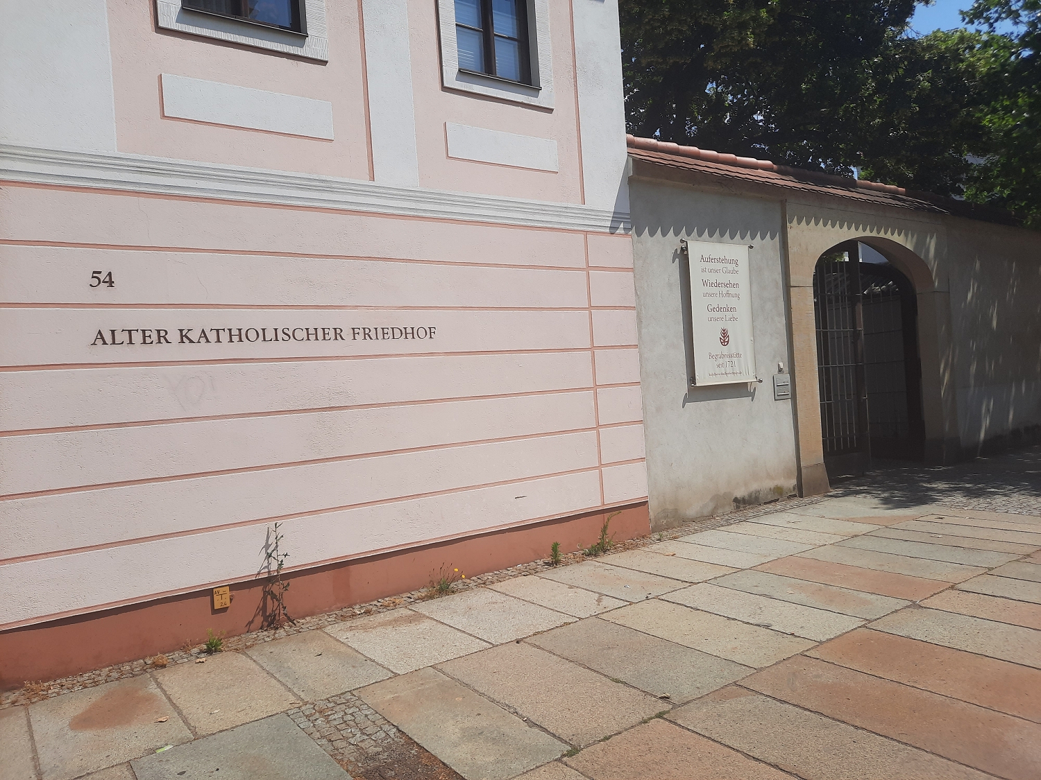 Der Alte Katholische Friedhof zählt zu den Ältesten Dresdens, 1724 fand die erste Beerdigung statt, und auch heute ist er immer noch in Benutzung. Im Laufe der Jahre wurde er mehrfach erweitert, bis schließlich der Neue Katholische Friedhof in der Bremer Straße (ca. 1,5 km entfernt) 1873 eingeweiht wurde.