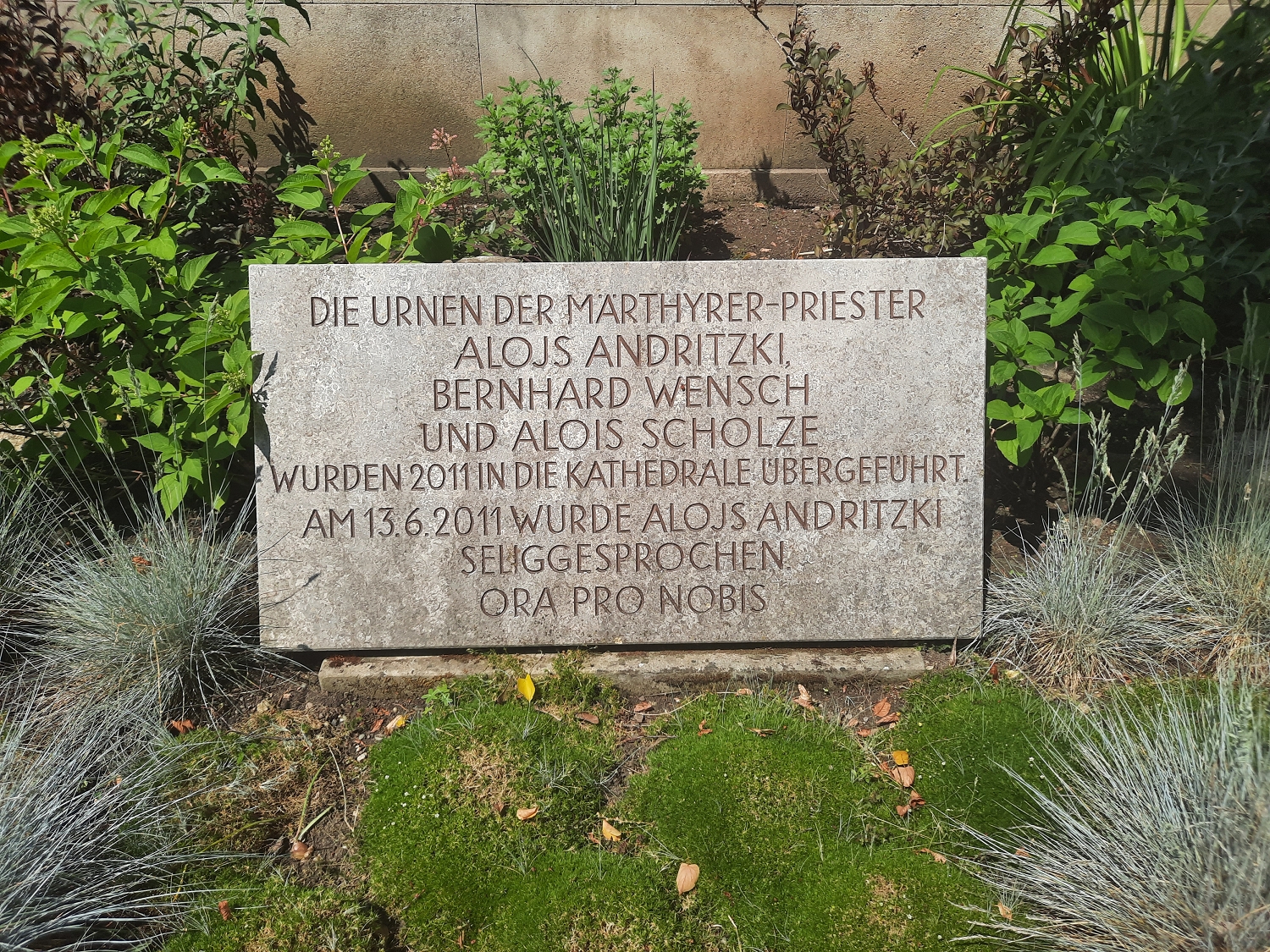 Die Asche, die den Familien aus dem Konzentrationslager zugeschickt wurde, wurde auf dem Alten Katholischen Friedhof in der Priestergruft beigesetzt. Mit der Seligsprechung Alois Andritzkis 2011 wurde seine Urne, sowie die der anderen beiden Priester, in einer feierlichen Prozession in die Dresdner Hofkirche überführt.