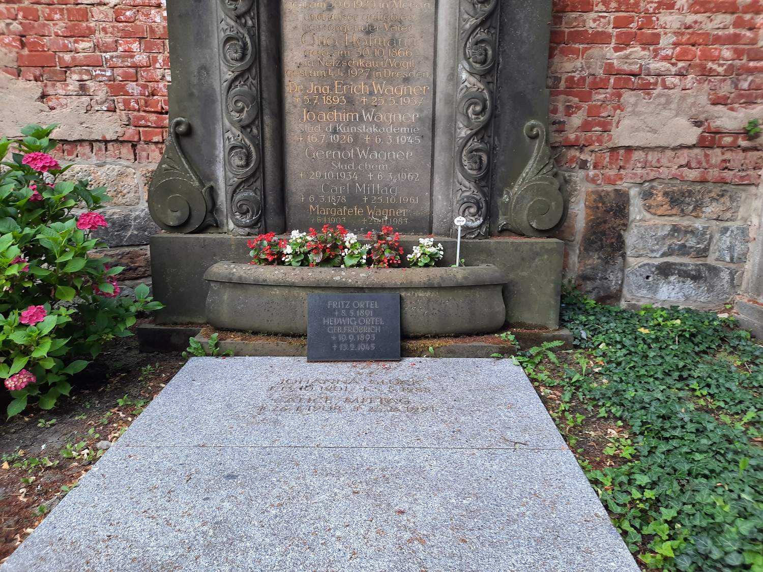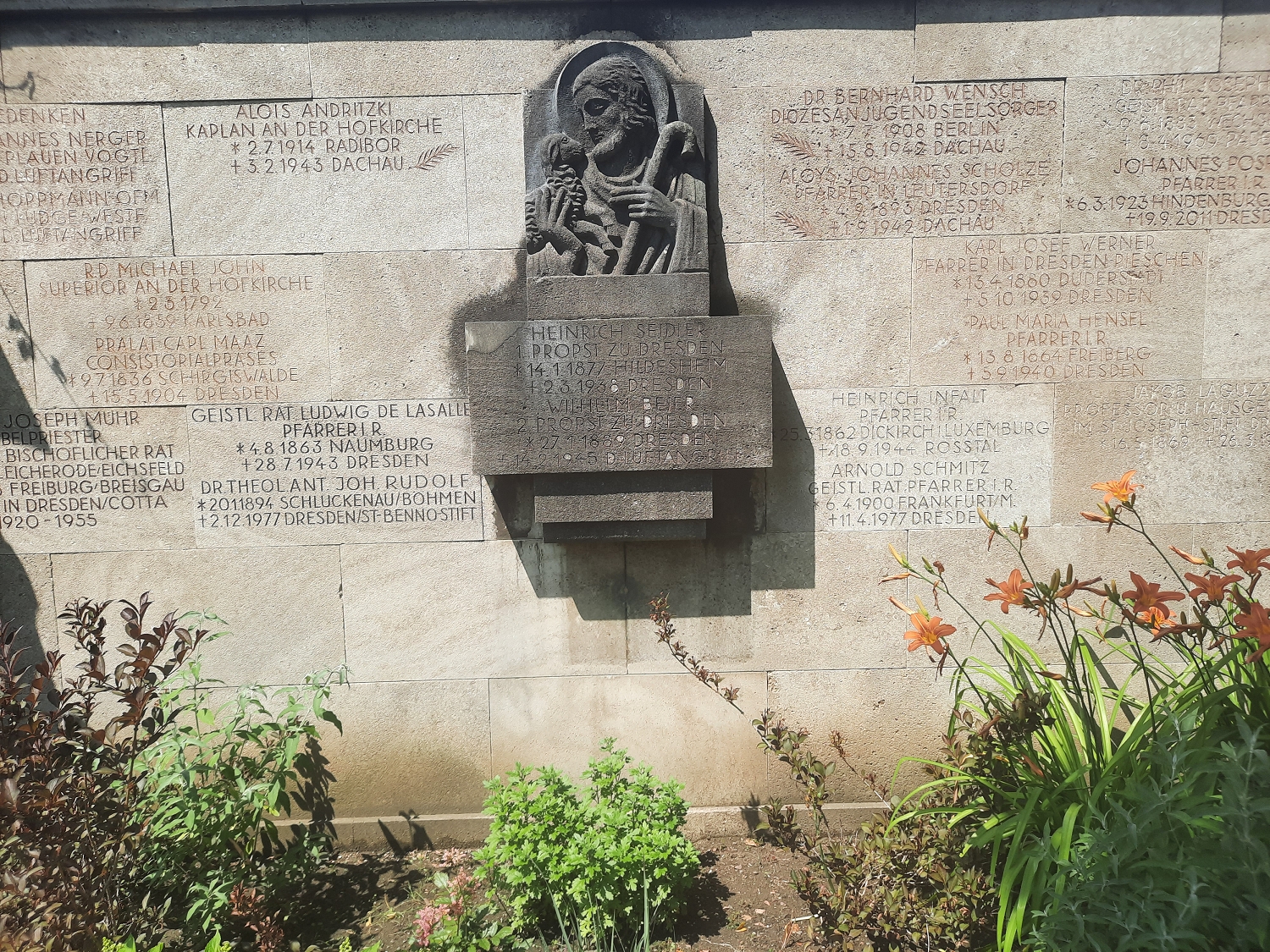Eine Grabstätte, die viel Aufmerksamkeit auf sich zieht, ist die Priestergruft. Namentlich an den Steinen erwähnt werden vier Kriegsopfer. Ein Pfarrer starb während der Luftangriffe vom 13./14. Februar auf Dresden, während Alois Andritzki, Bernhard Wensch und Alois Scholze im Konzentrationslager Dachau ermordet wurden. Sie alle hatten sich offen gegen den Nationalsozialismus ausgesprochen und wurden infolgedessen im sog. „Priesterblock“ im Konzentrationslager Dachau inhaftiert. Aufgrund der schlechten hygienischen Bedingungen und der mangelhaften Ernährungslage herrschte eine Typhusepidemie. Auch die Priester erkrankten und verstarben am Ende. Ein Mithäftling von Alois Andritzki sagte außerdem aus, dass Andritzki mit einer Giftspritze getötet worden sein soll, was allerdings nicht zu überprüfen ist.