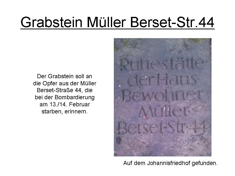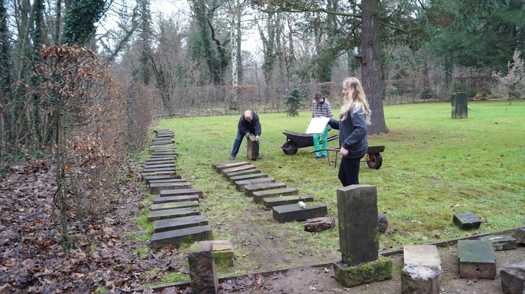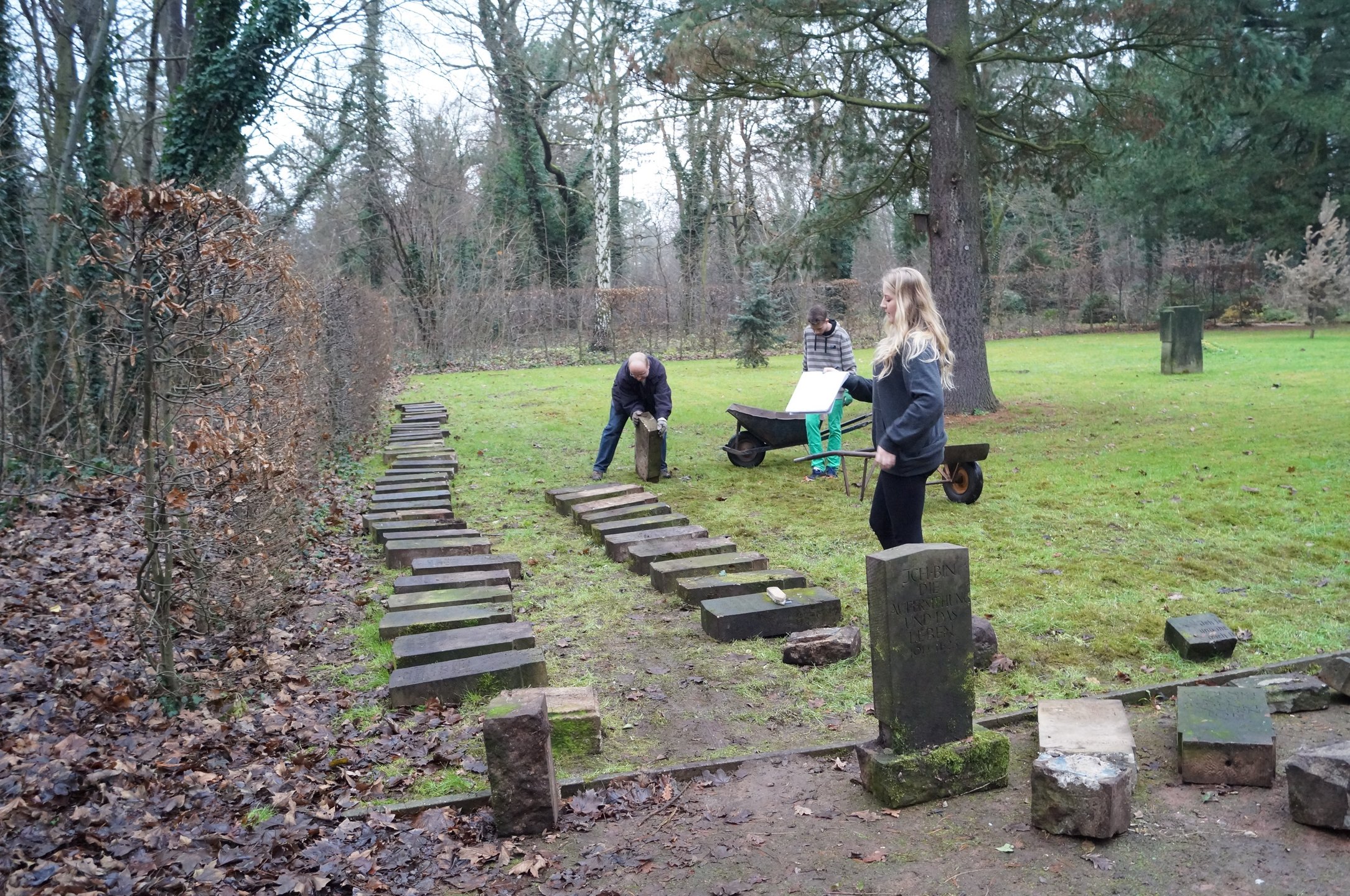 - Das Freilegen, Säubern und Registrieren von alten Grabsteinen, sowie die Integration in den Hain der Luftkriegsopfer auf dem Johannisfriedhof.