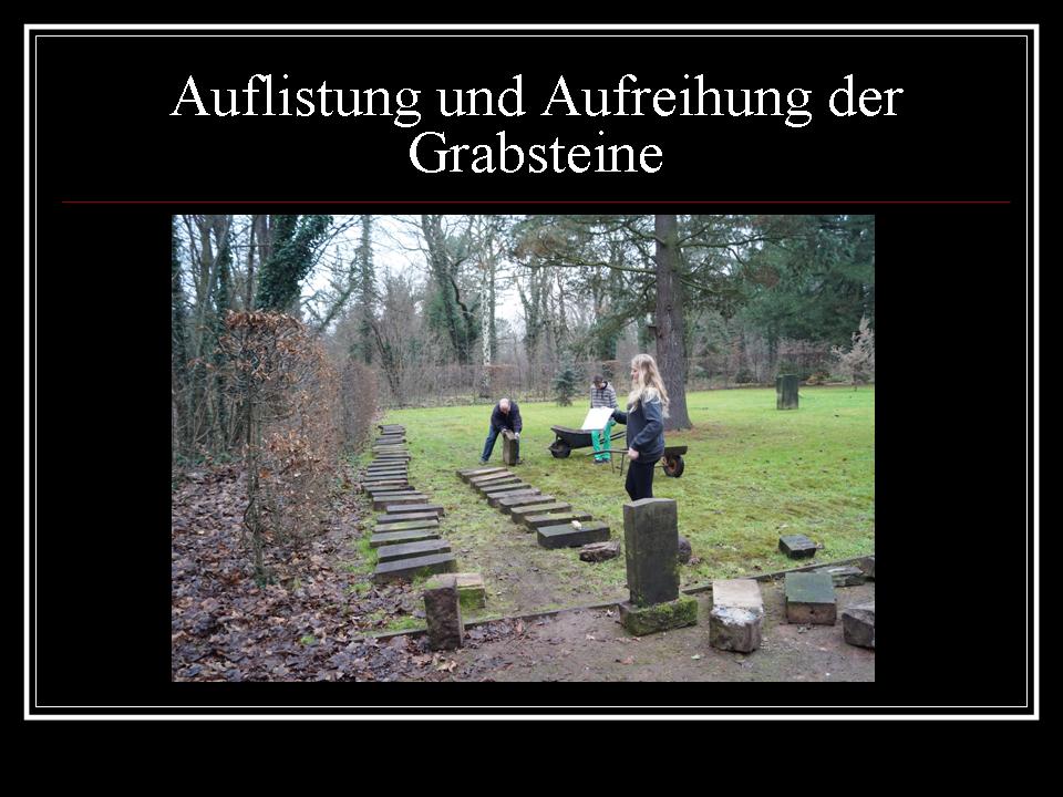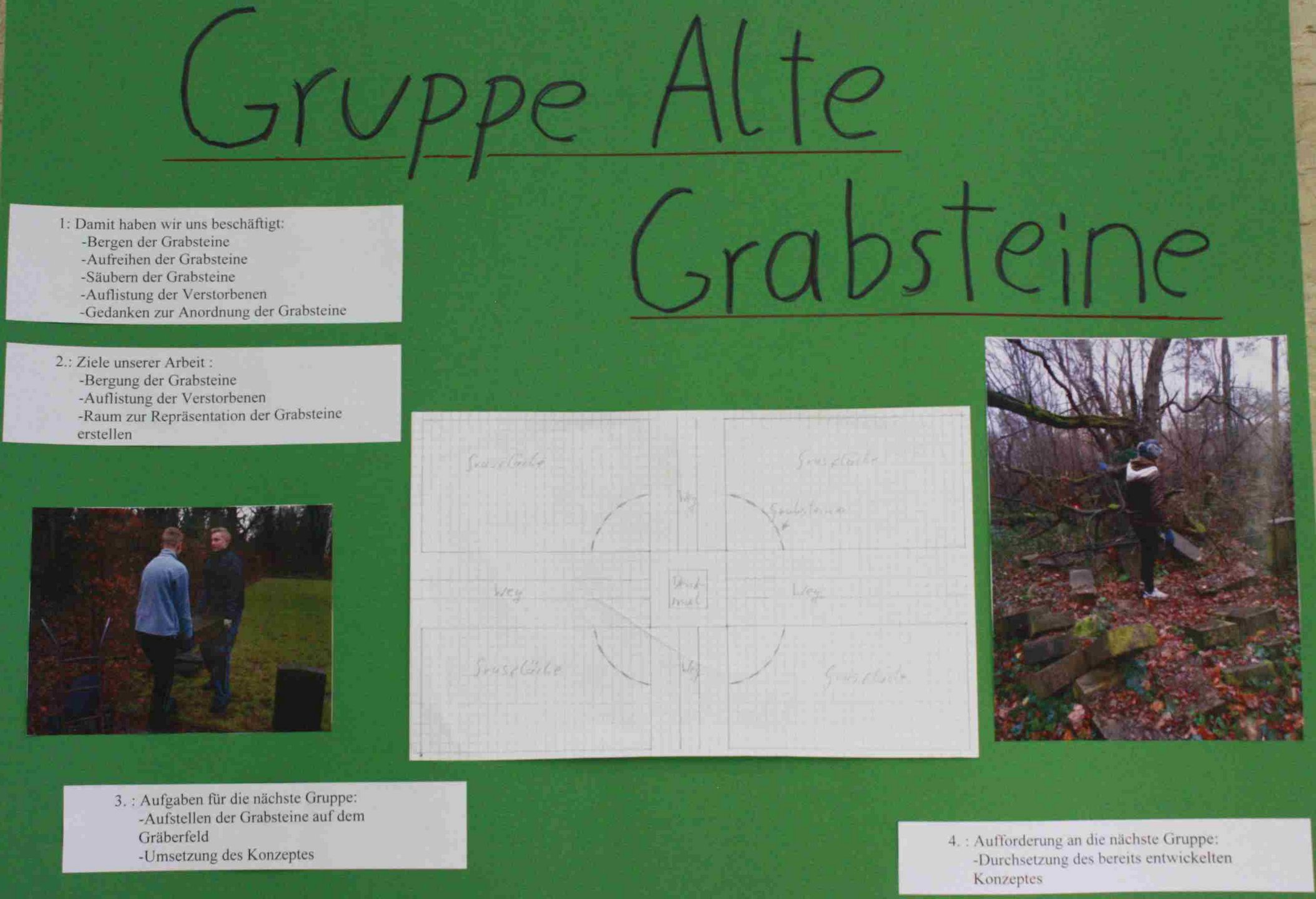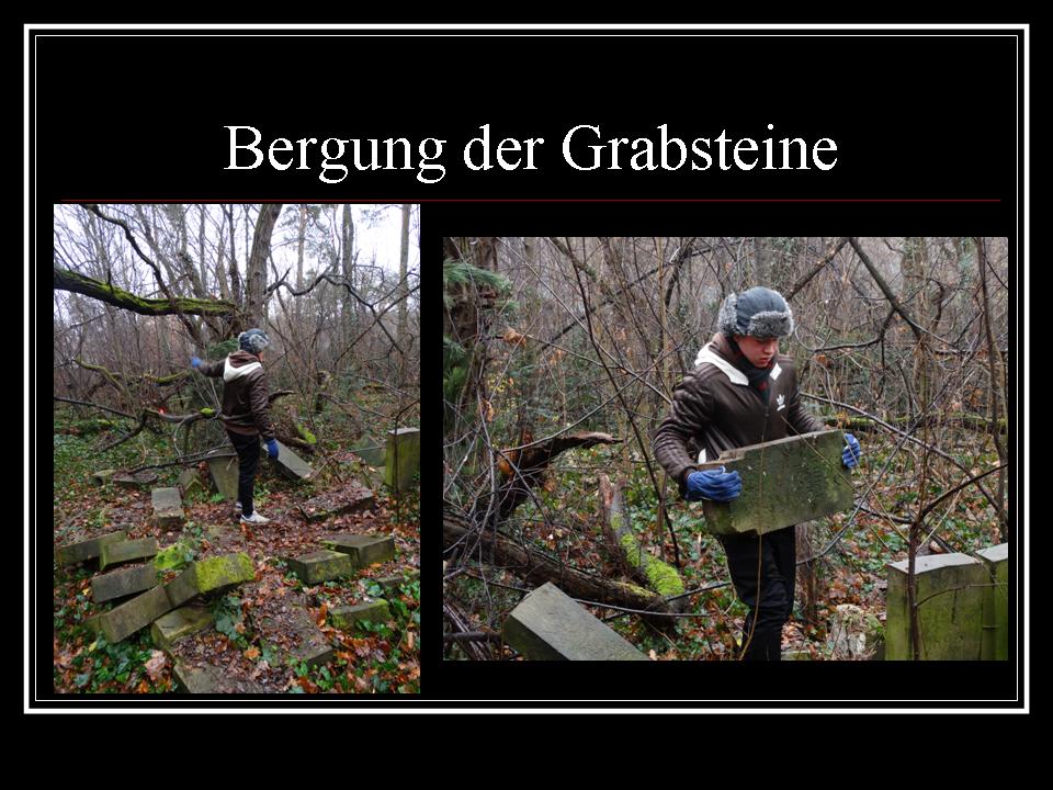 Als Erinnerung an die Opfer und an das Leid stellten wir an unserem letzten Projektag eine Reihe von Bildern in einer Powerpoint-Präsentation zusammen, damit man sieht, wie viele vergessene Opfer verschollen waren. Man sieht auch, wie viel Arbeit und Zeit für die Bergung und Aufarbeitung der Grabsteine aufzuwenden sind.