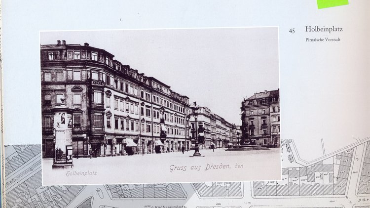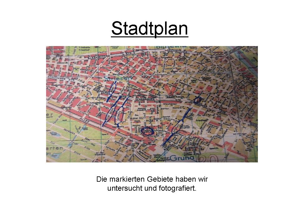 Wir zogen in zwei Gruppen durch die Stadt und suchten die Orte auf, die wir am Montag eingezeichnet haben. Von diesen Orten machten wir Fotos. Später waren wir in der Stadtbibliothek und haben nach Büchern geschaut, die alte Fotografien von Dresden enthalten.