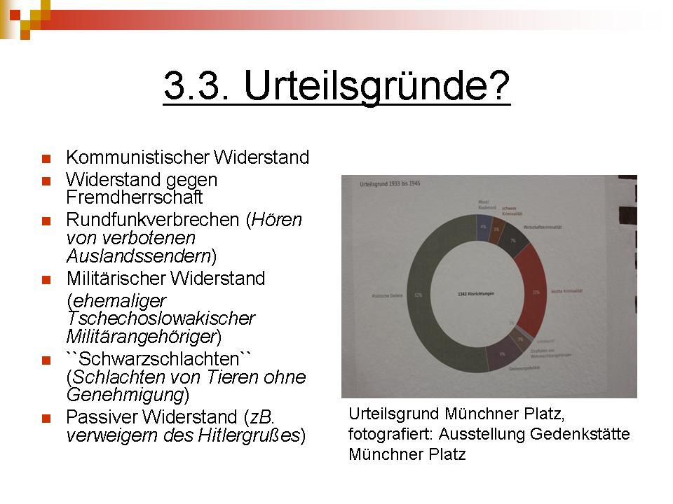 Montag der 15.12.2014: Unsere kleine Arbeitsgruppe, bestehend aus Tom R., Kim G., Tom W., Marc H., Ehm R. und Mariella G. hatte die Aufgabe sich über Einzelschicksale von tschechischen und polnischen Widerstandskämpfern zu informieren. Dafür trafen wir uns am Montag, noch ohne Tom W. und Marc, und sprachen erstmal über die Justiz und einen Rechtsstaat. Dabei wurden der NS-Staat und die heutige Republik verglichen. Wir fanden heraus, dass die Prozesse damals Schauprozesse waren, die Angeklagten sollten gedemütigt werden.