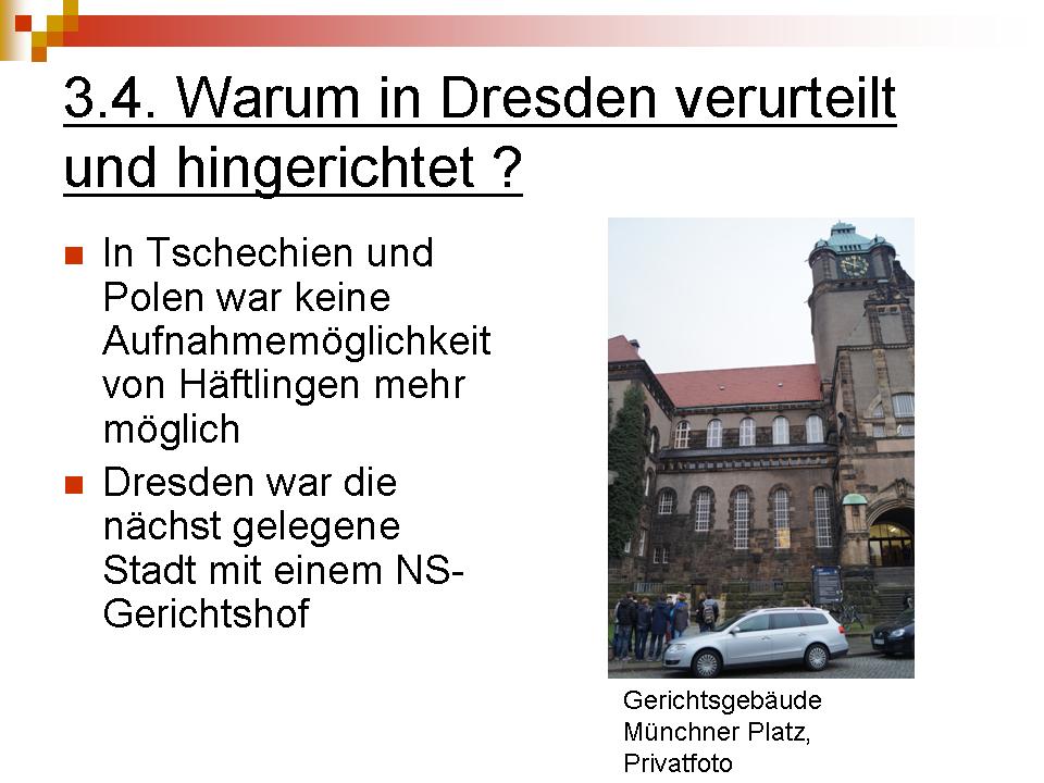 Wir trafen uns uns um 9:00 Uhr am Schillerplatz und fuhren anschließend zum Münchner Platz um uns ein Gedenkmuseum für die Opfer der Bombennacht und des Volksgerichtshof anzuschauen. Wir machten eine Führung mit einer Museumsführerin die uns vieles zu unserem Thema und dem der anderen Gruppe erzählte. Wir schauten uns auch das Außengelände des Volksgerichtshof an. Danach durften wir uns eine Person aussuchen über die etwas in diesem Museum verfasst war und mussten uns Stichpunkte dazu aufschreiben.