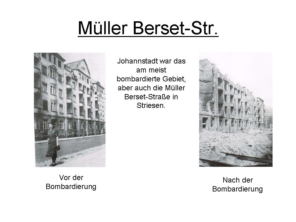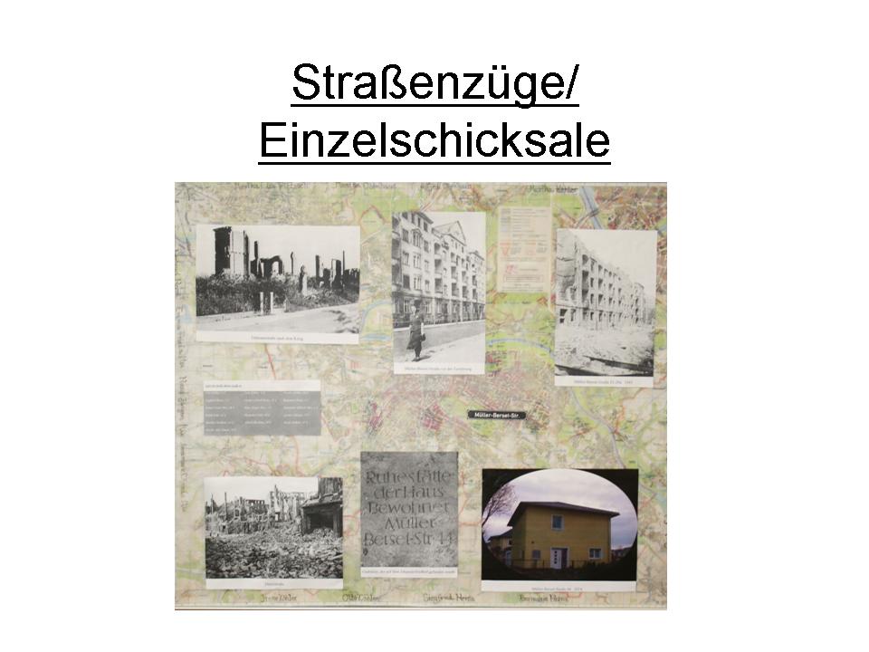- Der Vergleich Dresdens nach der Bombardierung und heute, die Arbeit mit Akten zur Informationsgewinnung und die Visualisierung der Ergebnisse.