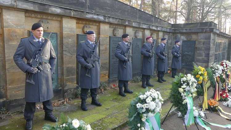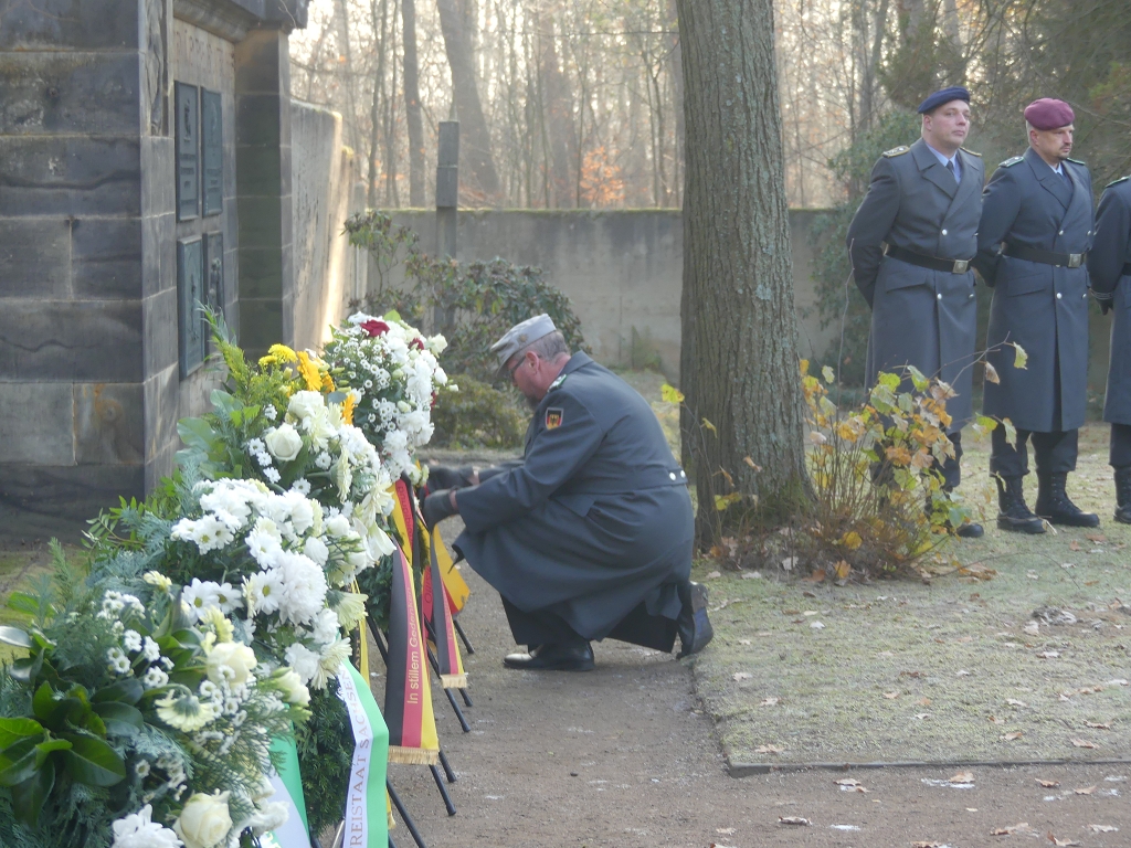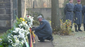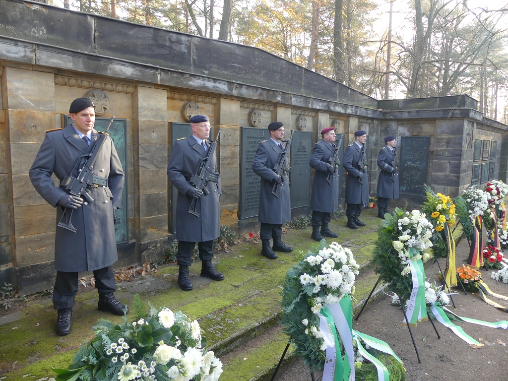 Die Bilanz des Volkstrauertages 2018 fällt sehr positiv aus. Die Veranstaltung vom 18.11.2018 war gut besucht. Auf dem Nordfriedhof zur Kranzniederlegung waren bei -10 Grad über 120 Menschen anwesend. Die Kränze wurden niedergelegt von der Landesvorsitzenden des Volksbundes Frau Andrea Dombois, MdL, Herrn Lantagspräsidenten Dr. Matthias Rößler, Herrn Ministerpräsidenten Michael Kretschmer, dem Kommandeur des Landeskommandos Sachsen Oberst Klaus Finck, dem Kommandeur der Offizierschule des Heeres BrigGen Martin Hein und dem Landesvorsitzenden des Reservistenverbandes des Landes Sachsen Herr OTL d. R. Hans-Jürgen Domani. Danach folgten zahlreiche Gebinde. Um 11:00 begann die Gedenkveranstaltung mit ca. 450 Besuchern im Landtag. Frau Dombois, Herr Lantagspräsident, Herr Ministerpräsident und der Erste Bürgermeister der Stadt Dresden richteten ihre Grußworte aus. Wie jedes Jahr redeten auch Schüler bei der Gedenkfeier. Dieses Jahr kamen sie aus der Makarenkoschule Leipzig. Dann folgte die sehr gelungene Gedenkrede von Her Prof. Dr. Werner J. Patzelt. Die Musikalische Untermalung leistete das Landespolizeiorchester Sachsen. Den Abschluss bildete ein kleiner Empfang mit Getränken und Suppen, die vom Studentenwerk bereitgestellt wurden. Die Resonanz der Veranstaltung war sehr positiv. Wir danken allen Teilnehmern, Spendern, Rednern und Helfern.